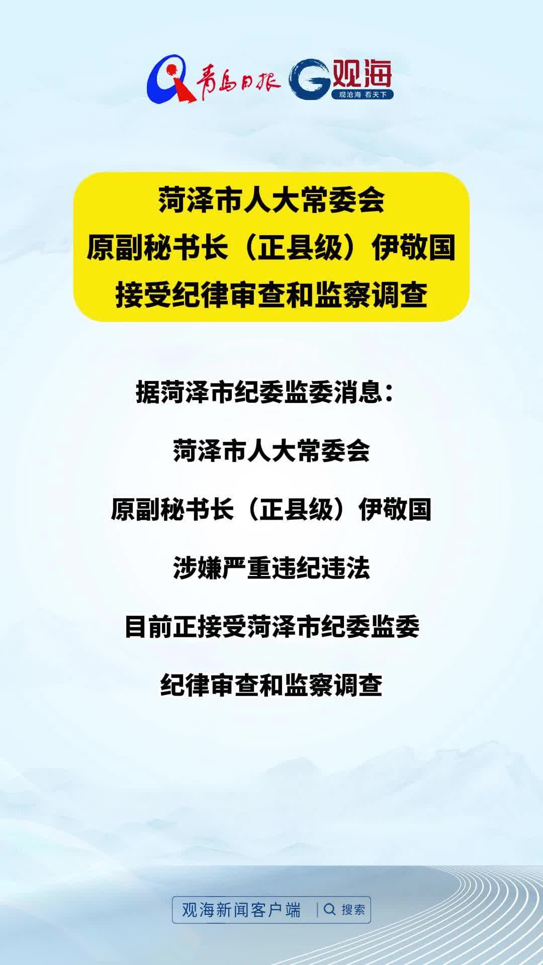 菏泽市人大常委会原副秘书长(正县级)伊敬国接受纪律审查和监察调查