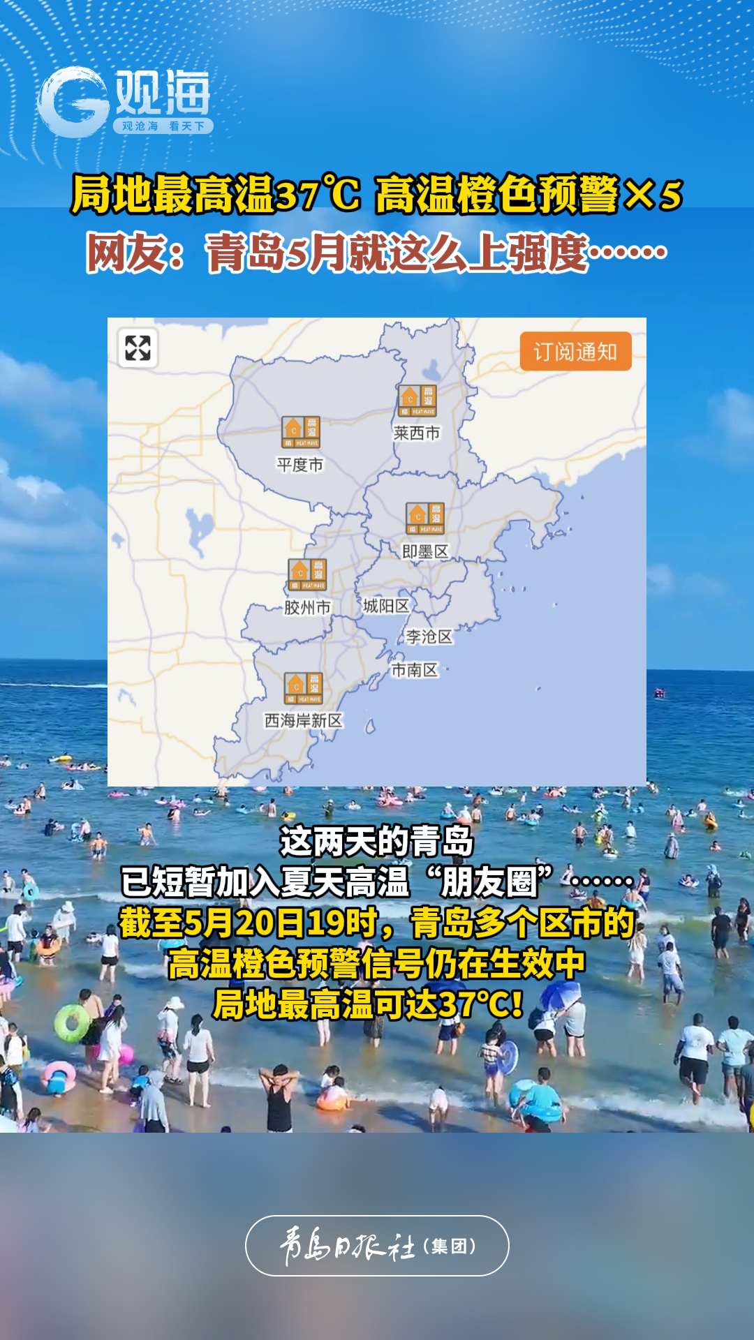 局地最高温37℃,高温橙色预警 ×5!网友:青岛5月就这么上强度……