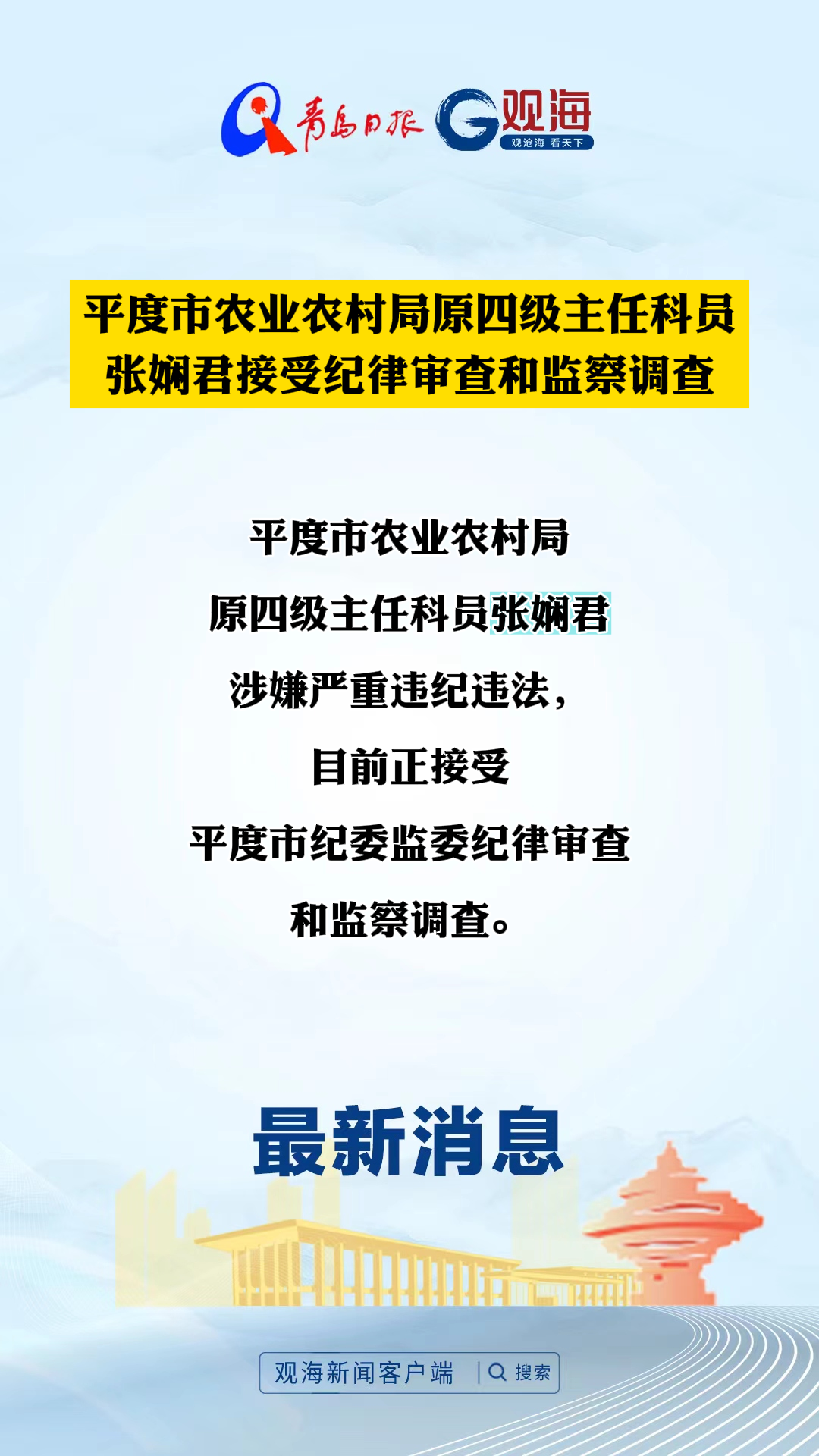 平度市农业农村局原四级主任科员张娴君接受纪律审查和监察调查