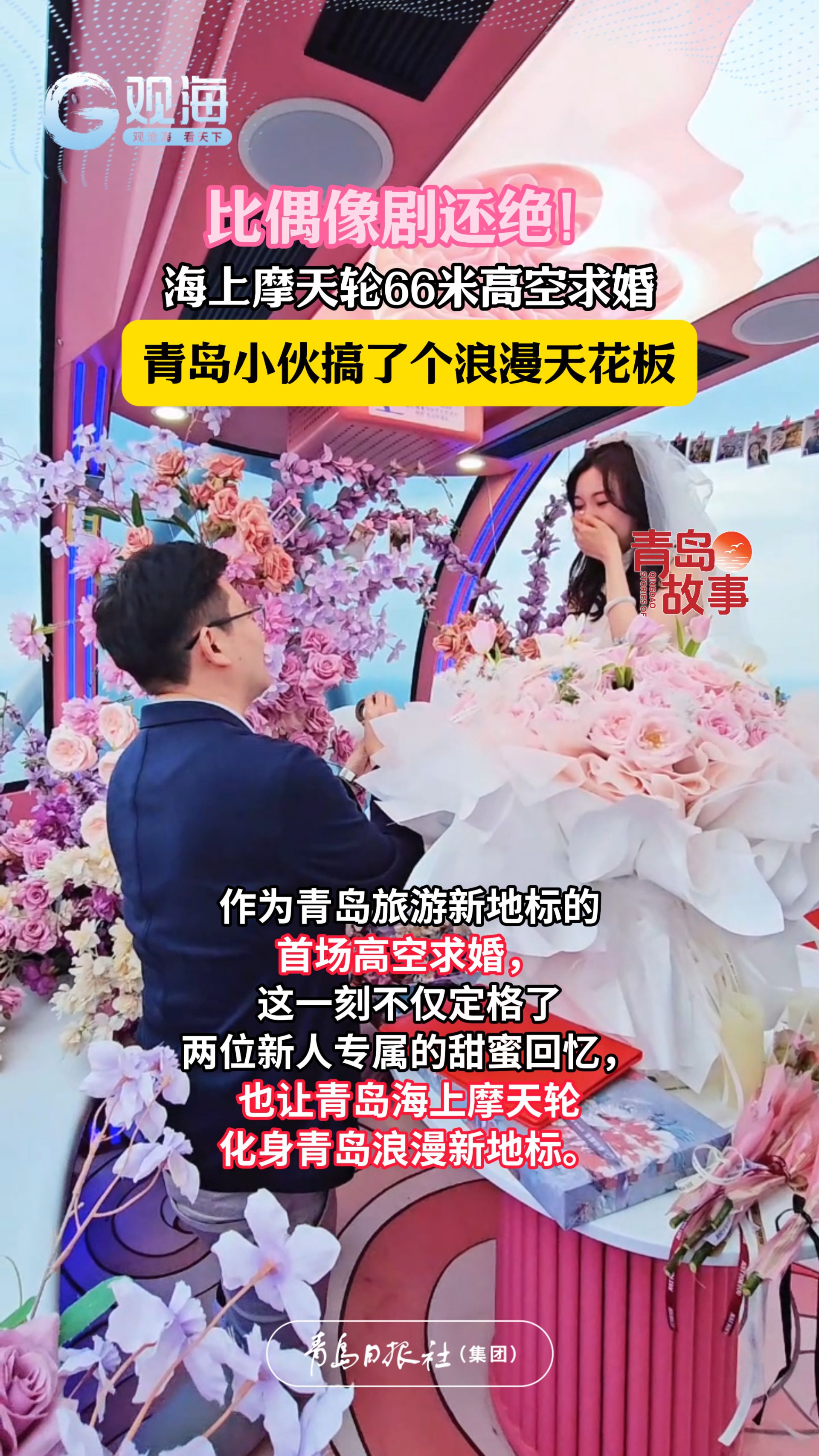 比偶像剧还绝!海上摩天轮66米高空求婚,青岛小伙搞了个浪漫天花板