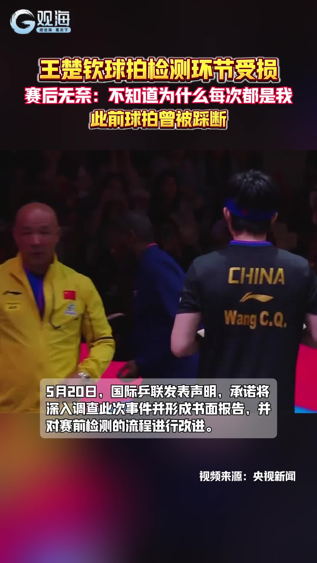 王楚钦球拍检测环节受损