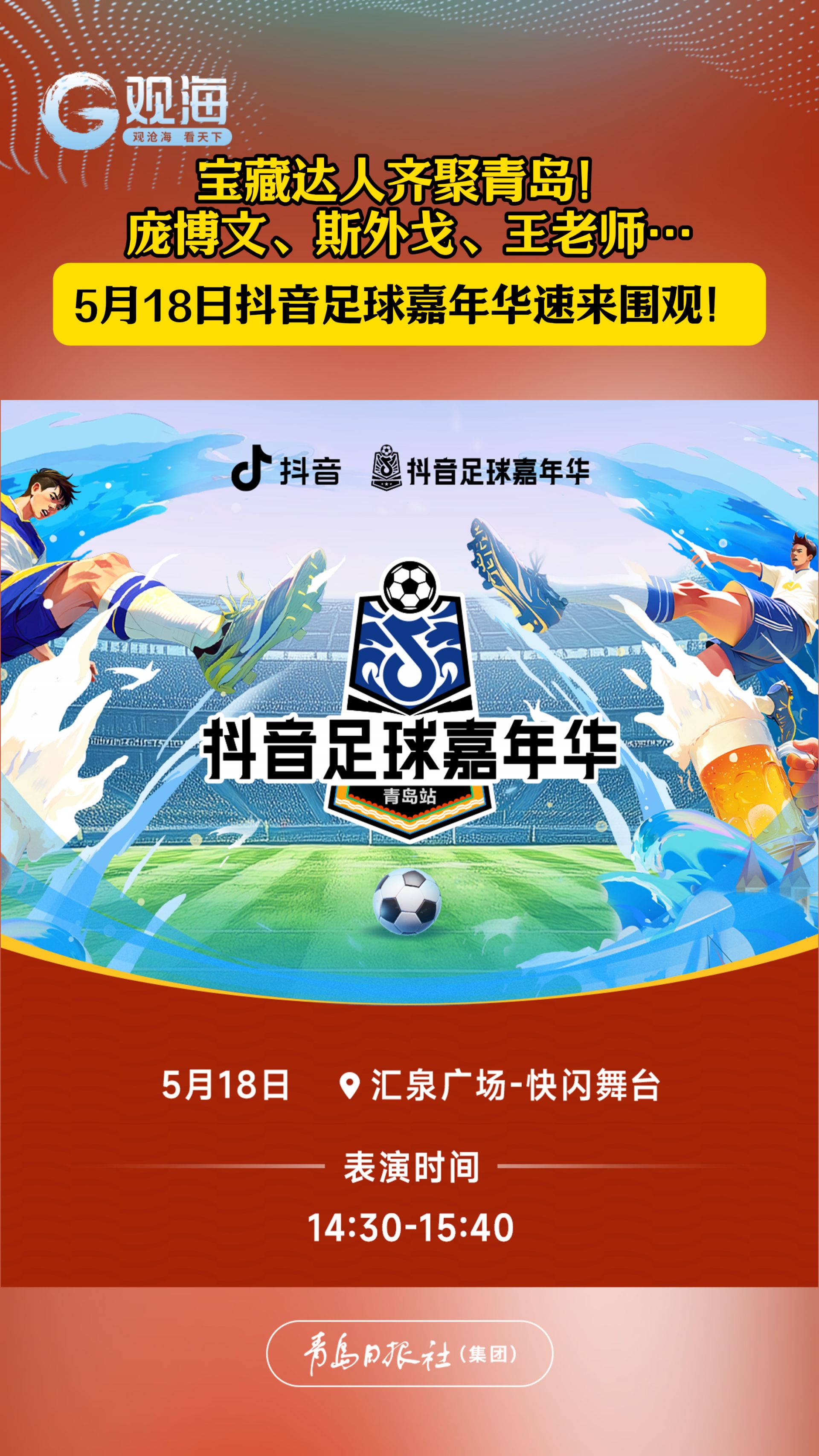宝藏达人齐聚青岛!庞博文、斯外戈、王老师…5月18日抖音足球嘉年华速来围观!