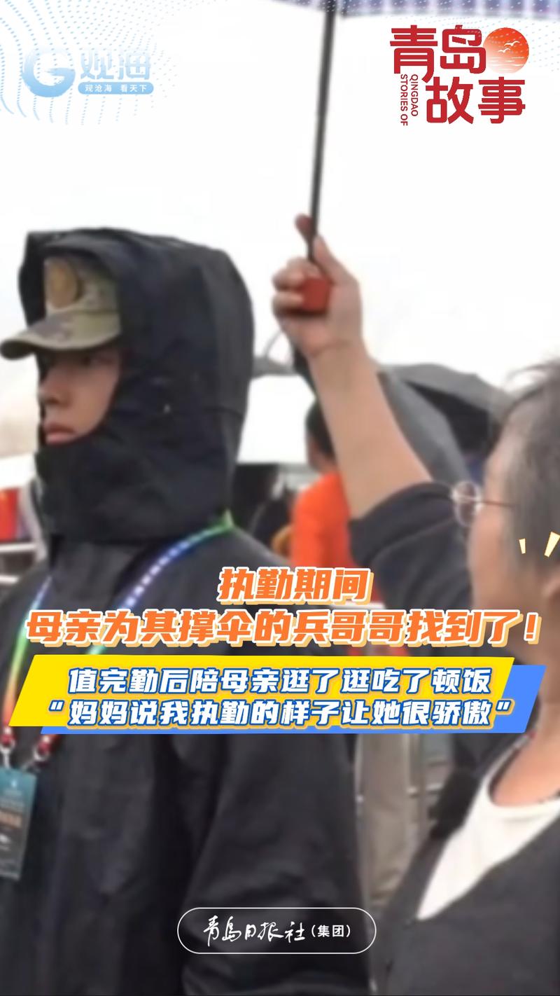 执勤期间母亲为其撑伞的兵哥哥找到啦!值完勤后陪母亲逛了逛吃了顿饭,“妈妈说我执勤的样子让她很骄傲”