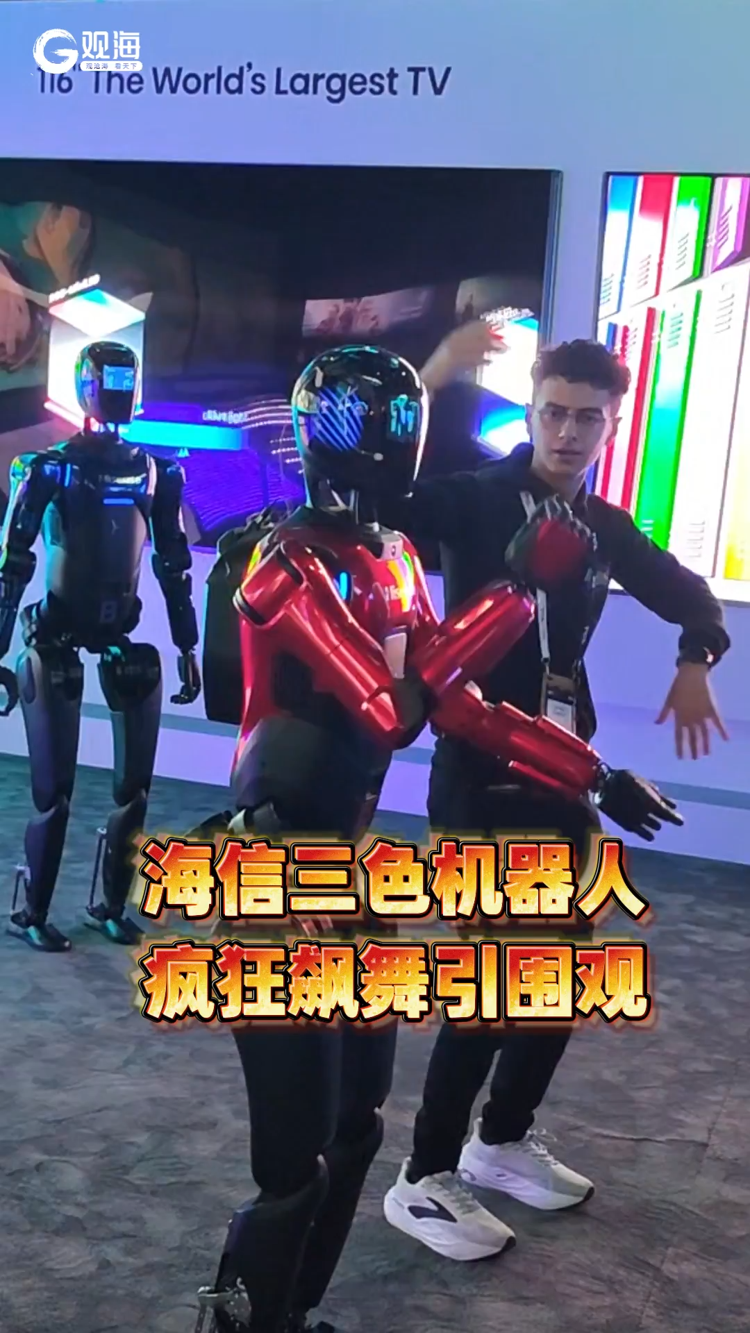 海信三色机器人疯狂飙舞引围观