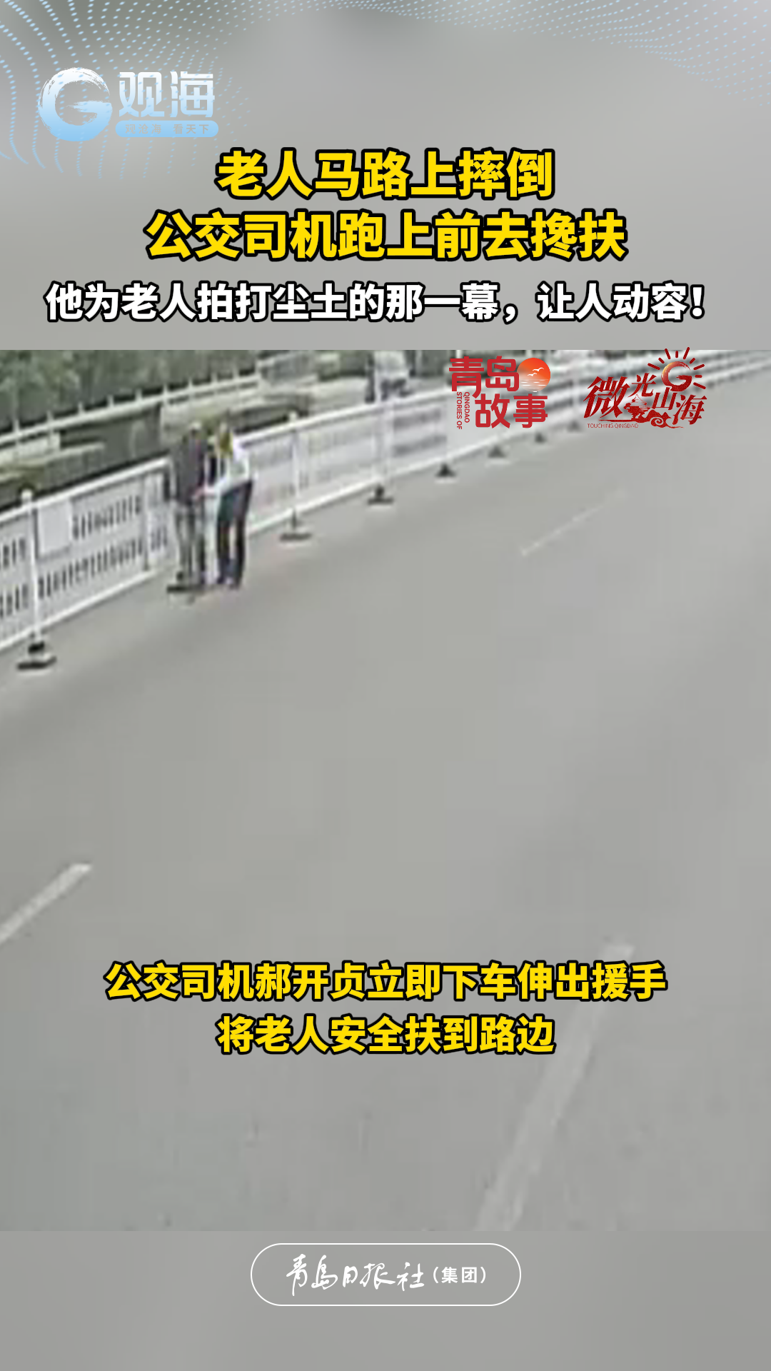 老人马路上摔倒,公交司机跑上前去搀扶,他为老人拍打尘土的那一幕,让人动容