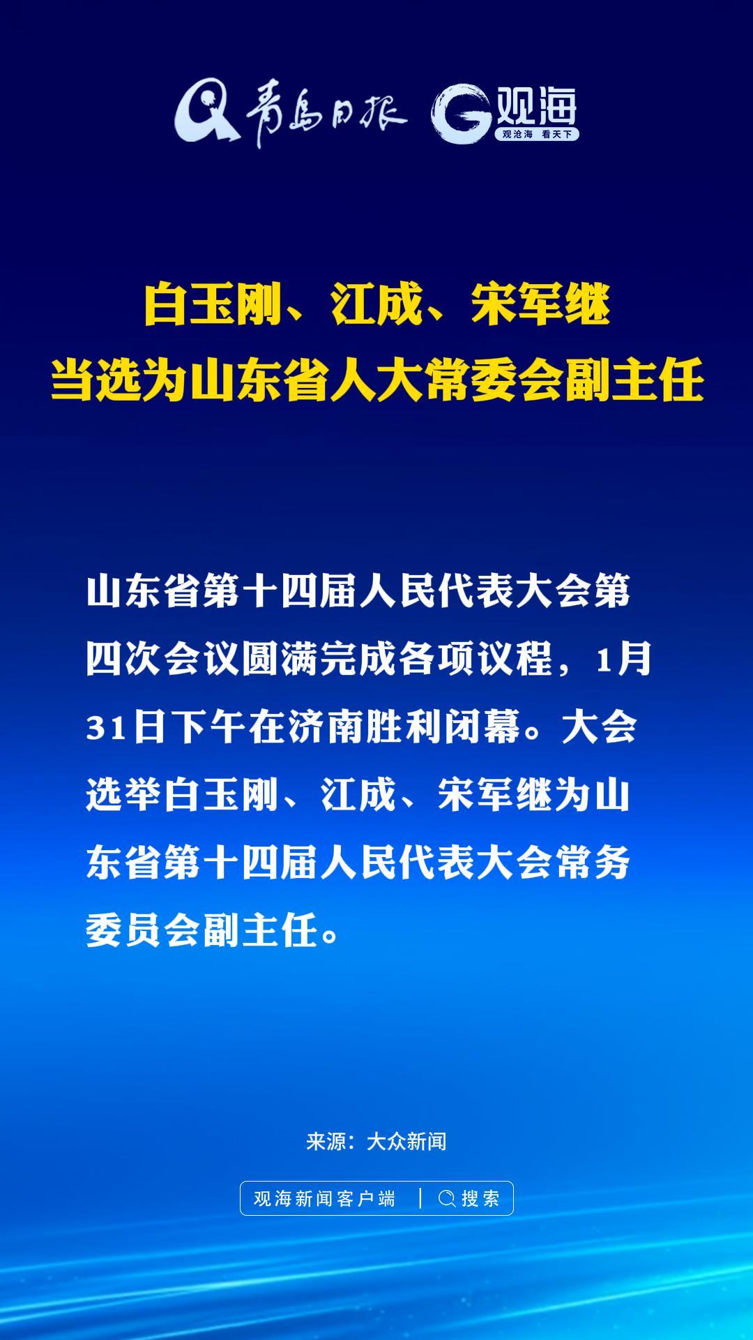 白玉刚、江成、宋军继当选为山东省人大常委会副主任
