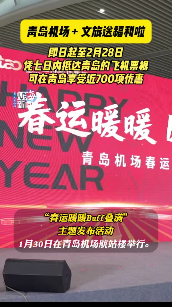 青岛机场 + 文旅送福利啦!即日起至2月28日,凭七日内抵达青岛的飞机票根,可在青岛享受近700项优惠!