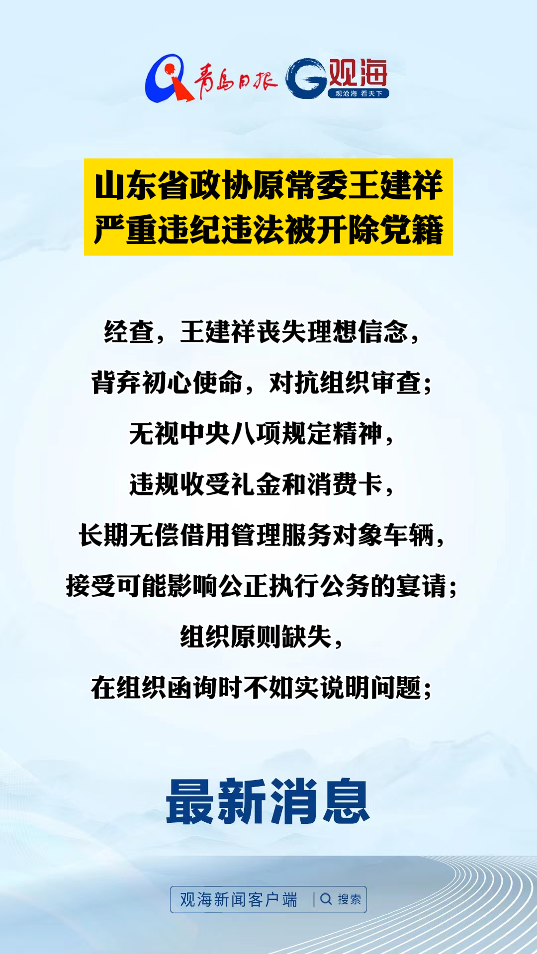 山东省政协原常委王建祥严重违纪违法被开除党籍