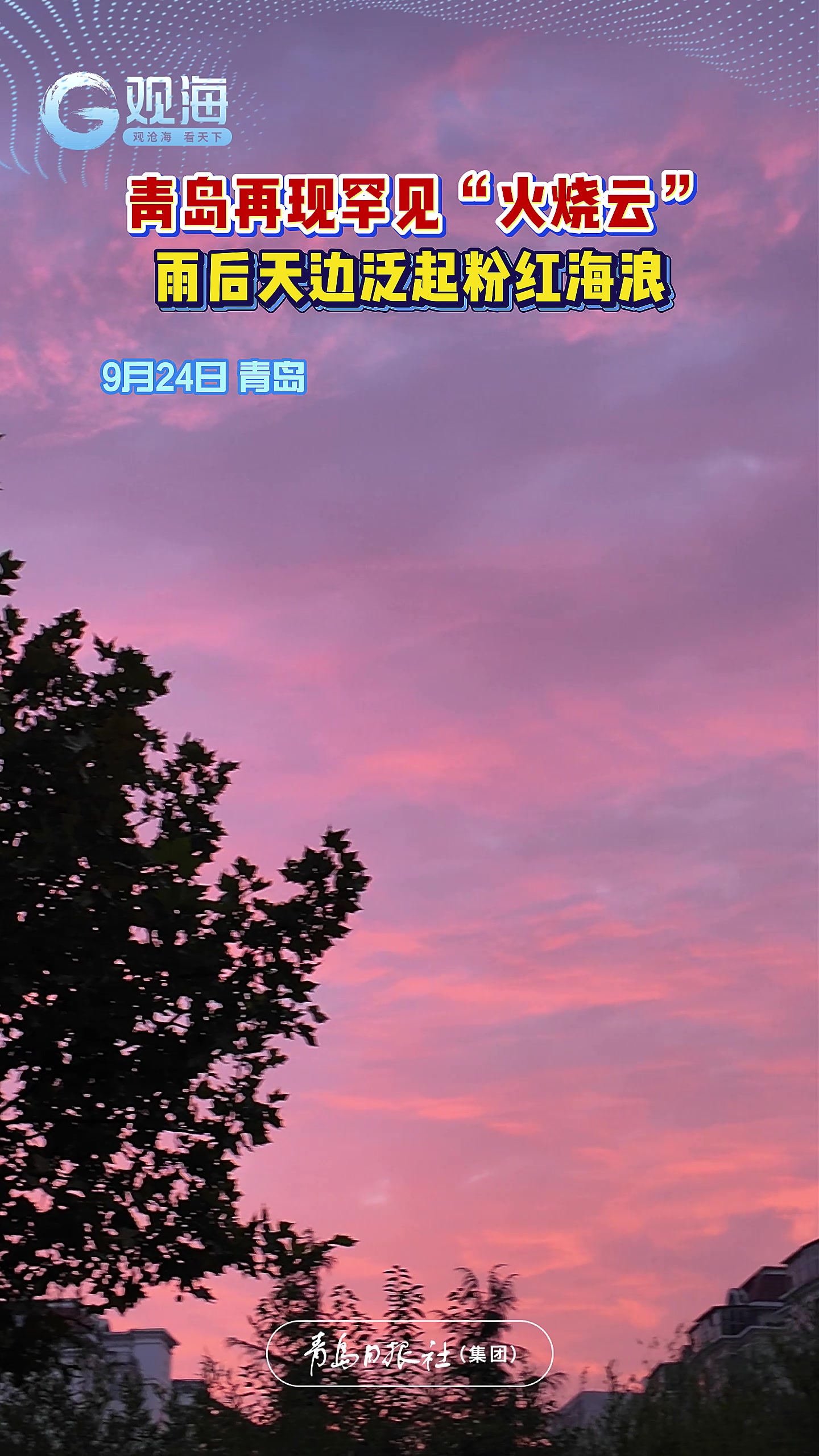 青岛再现“火烧云”!雨后天边泛起粉红海浪