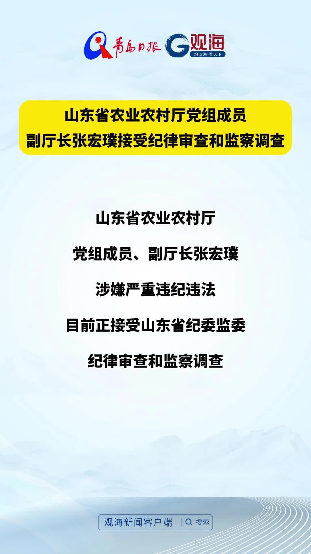 山东省农业农村厅党组成员、副厅长张宏璞接受纪律审查和监察调查