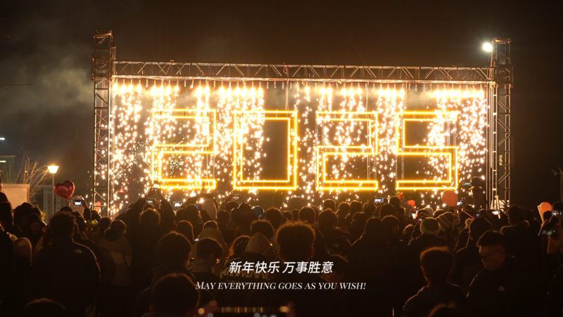 跨年味十足,浮山湾畔人潮涌动