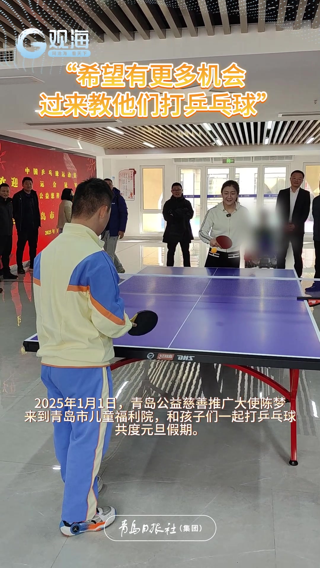 陈梦走进青岛市儿童福利院:“希望有更多机会, 过来教他们打乒乓球”