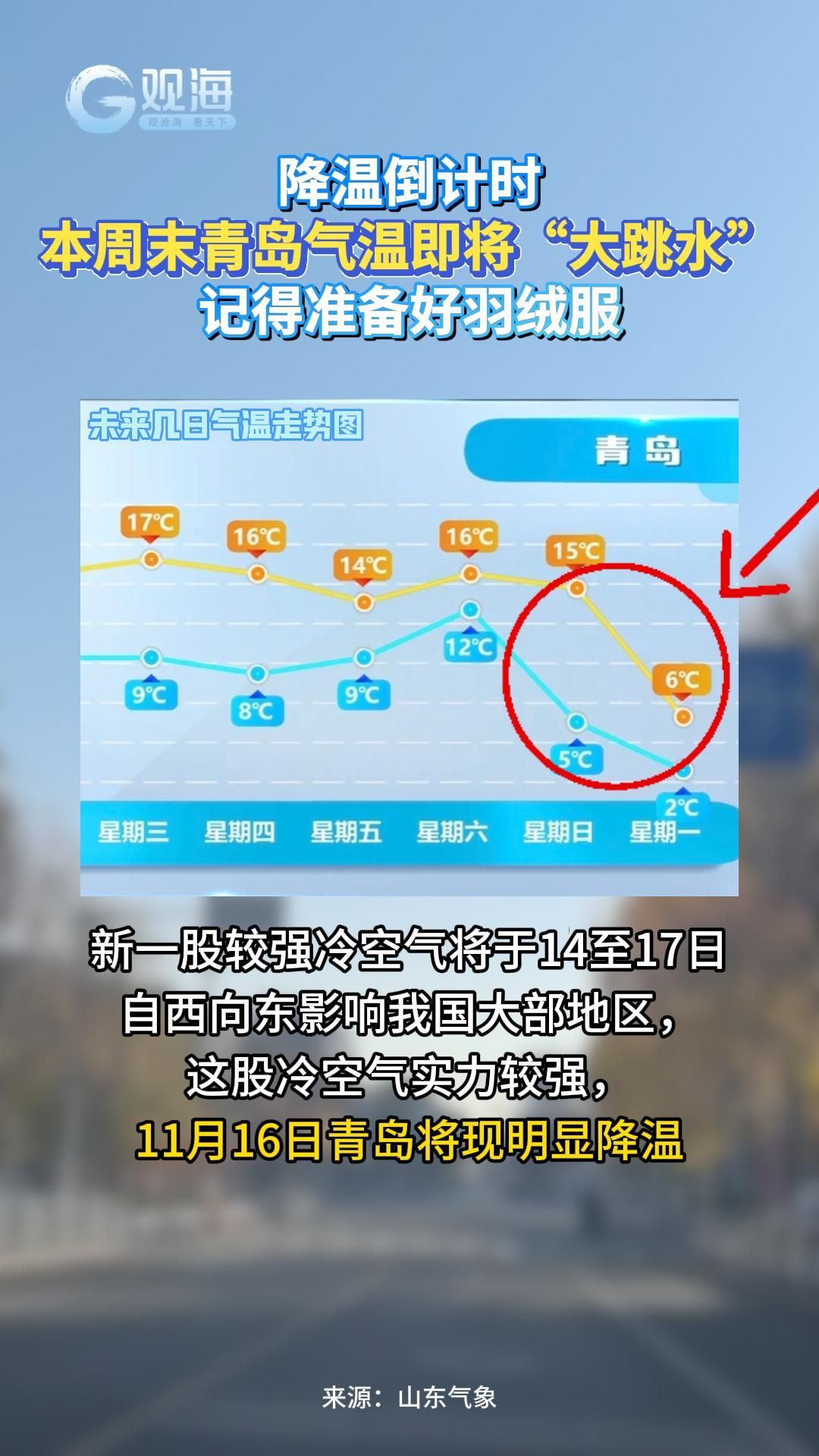 本周末青岛气温即将“大跳水”,记得准备好羽绒服
