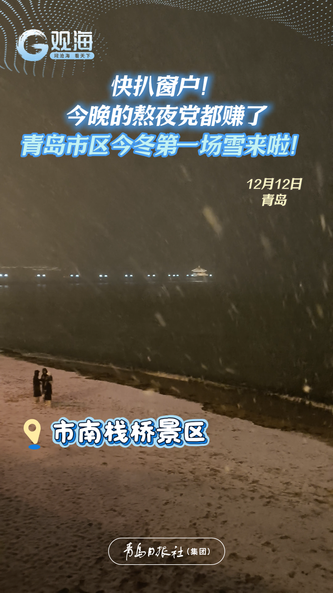 快扒窗户!今晚的熬夜党都赚了!青岛市区今冬第一场雪来啦!
