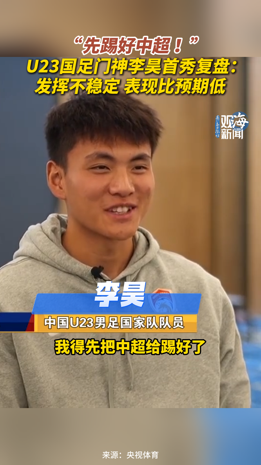 U23国足门神李昊首秀复盘:发挥不稳定,表现比预期低