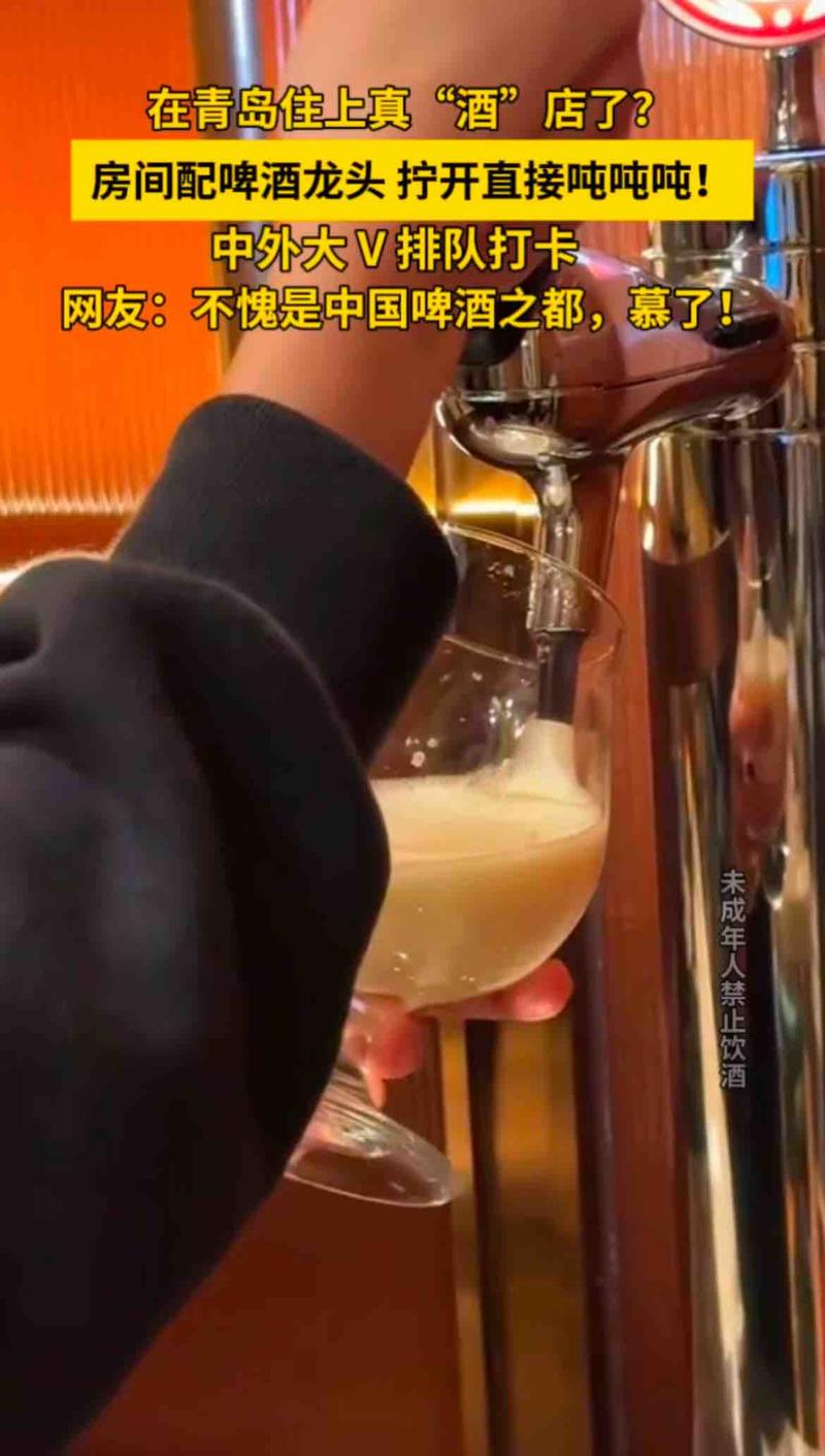 在青岛住上真“酒”店了?房间配啤酒“水龙头” ,拧开直接吨吨吨!
