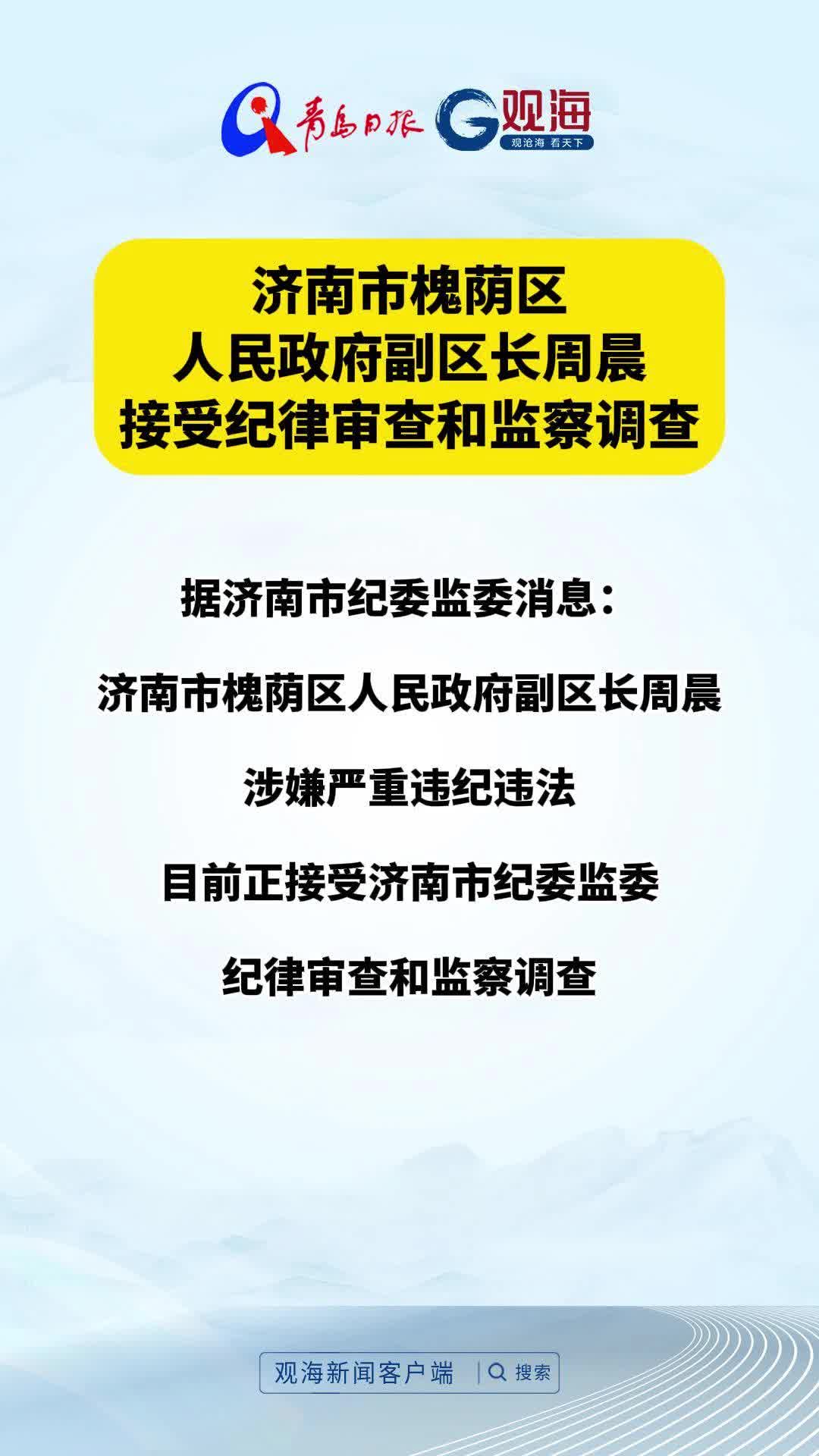 济南市槐荫区人民政府副区长周晨接受纪律审查和监察调查