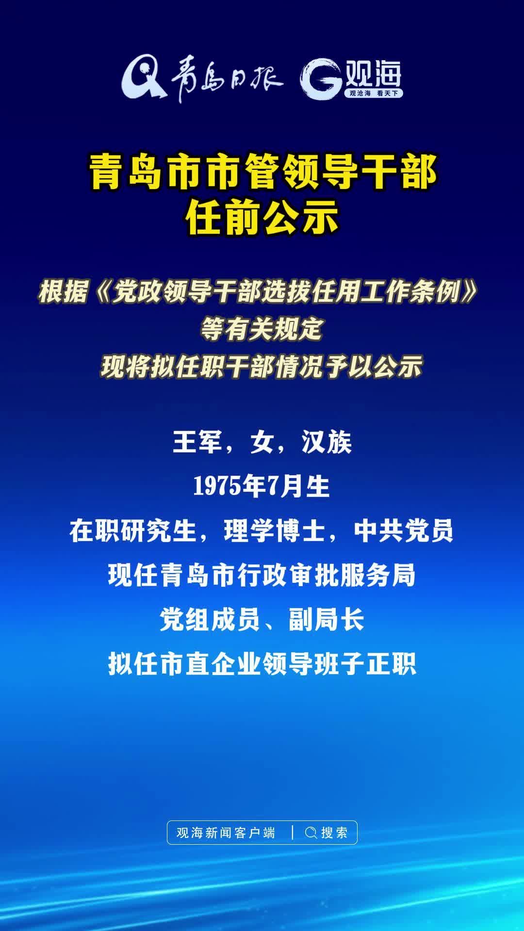青岛市市管领导干部任前公示