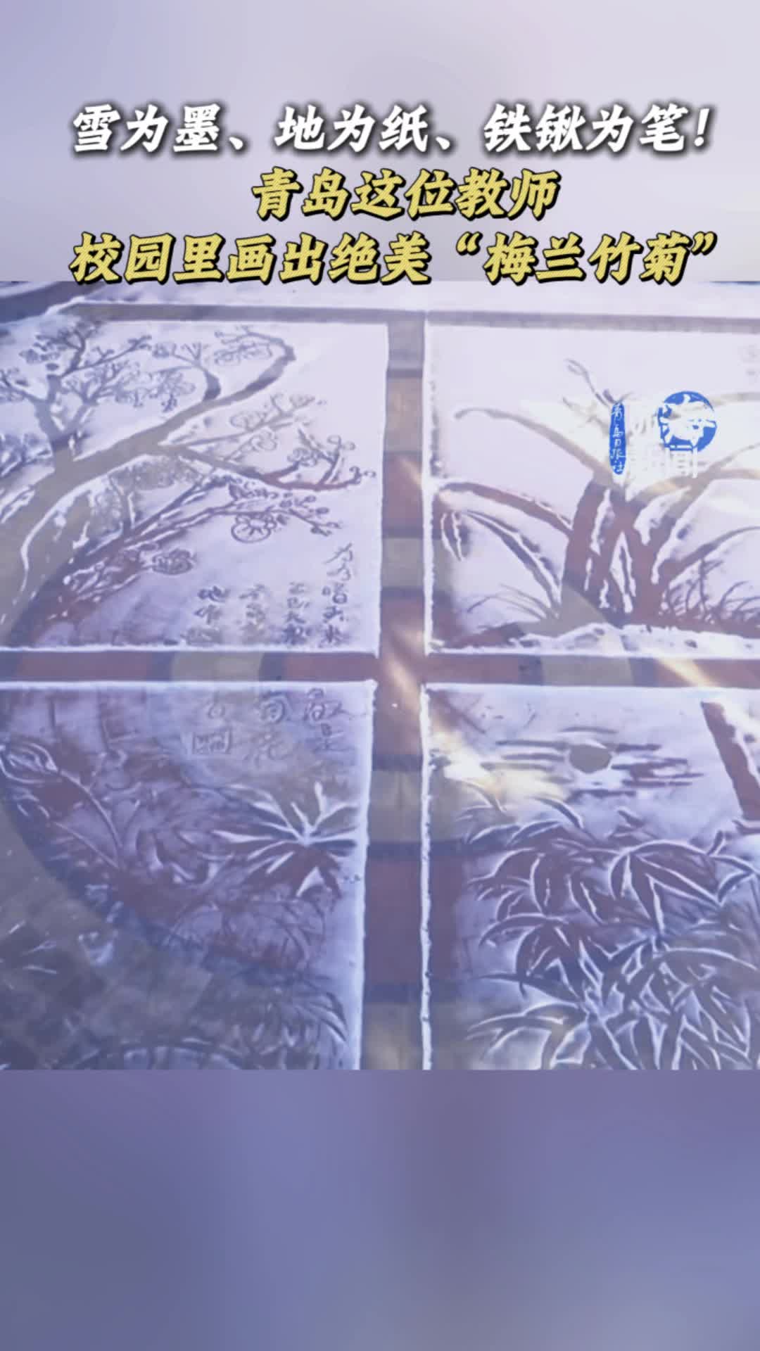 雪为墨、地为纸、铁锹为笔!青岛这位教师校园里画出绝美“梅兰竹菊”