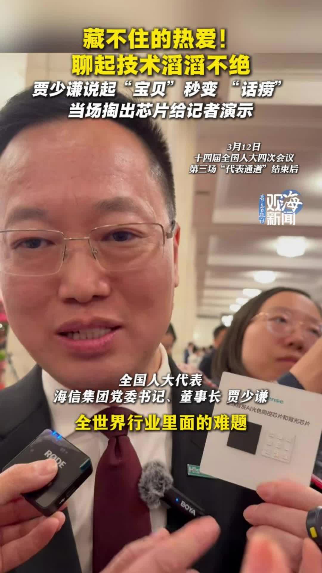 藏不住的热爱!聊起技术滔滔不绝,贾少谦说起“宝贝”秒变 “话痨”,当场掏出芯片给记者演示