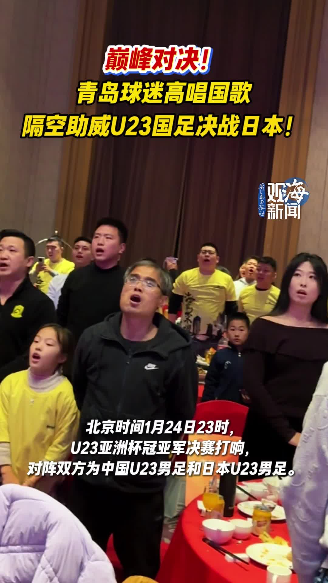 巅峰对决!青岛球迷高唱国歌,隔空助威U23国足决战日本!