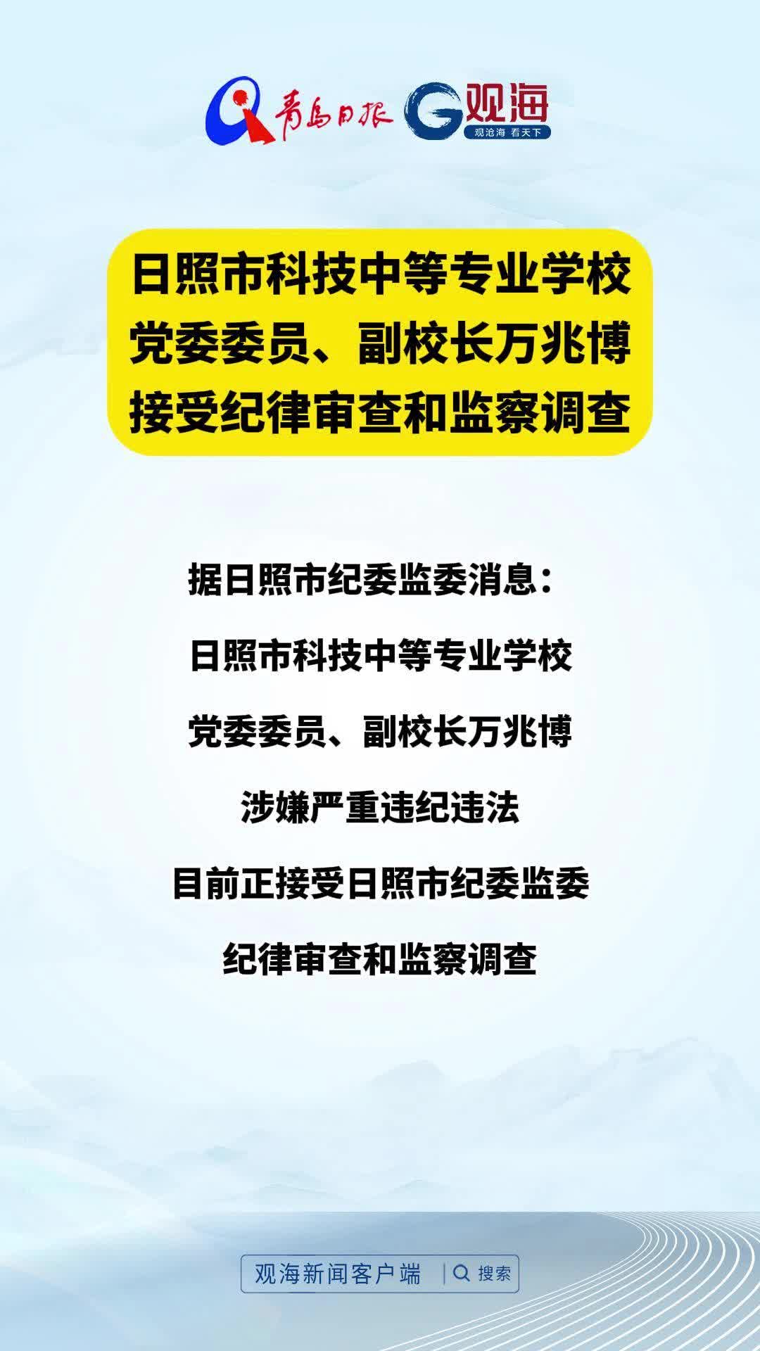 日照市科技中等专业学校党委委员、副校长万兆博接受纪律审查和监察调查