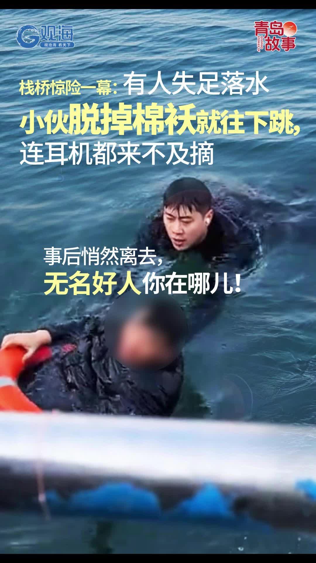脱掉棉袄就往下跳,连耳机都没来得及摘!栈桥有人失足落水,小伙果断救人,为你点赞!