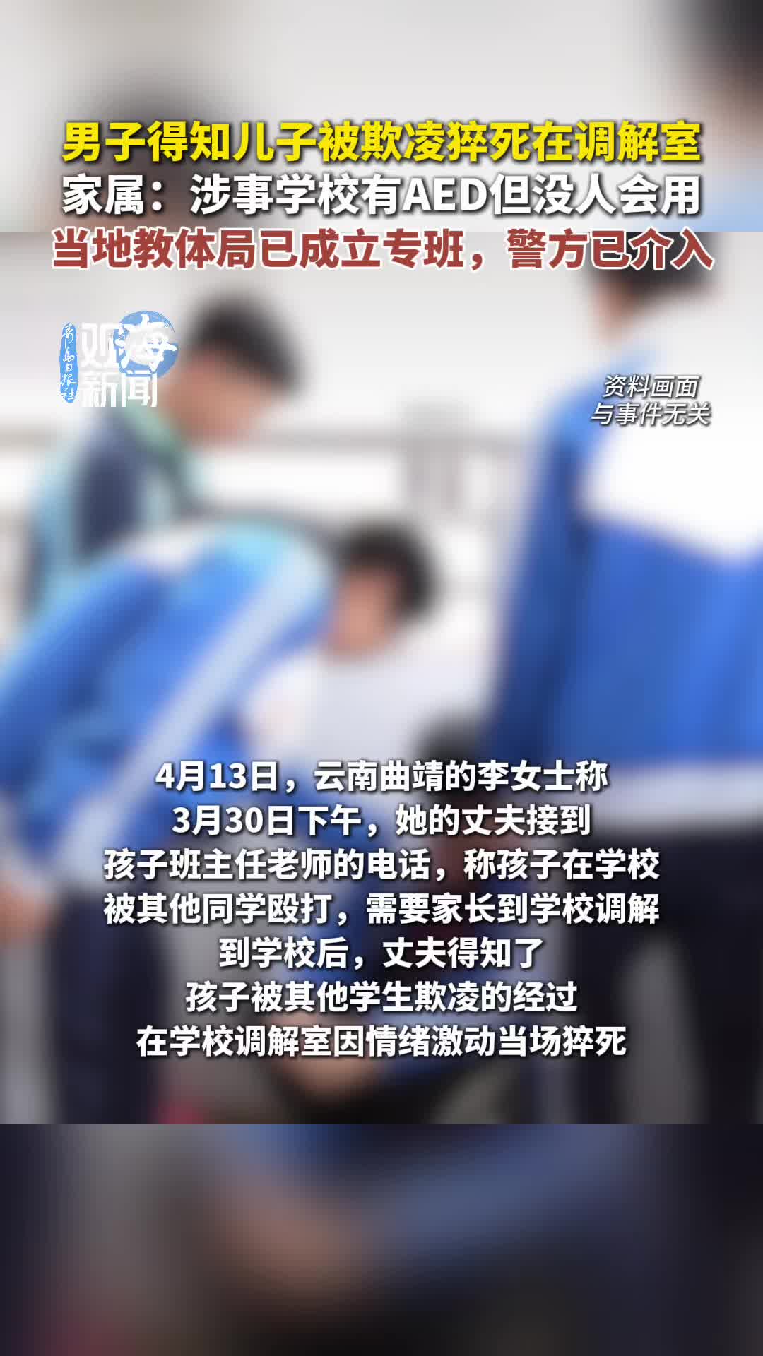 男子得知儿子被欺凌猝死在调解室,警方已介入