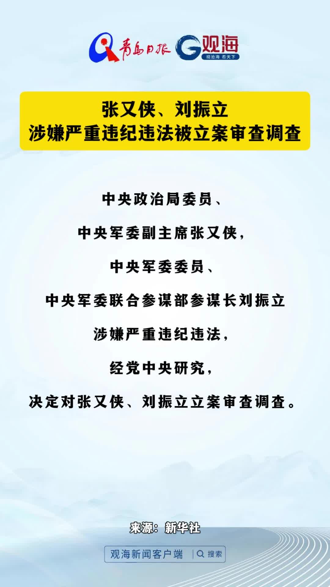 张又侠、刘振立涉嫌严重违纪违法被立案审查调查