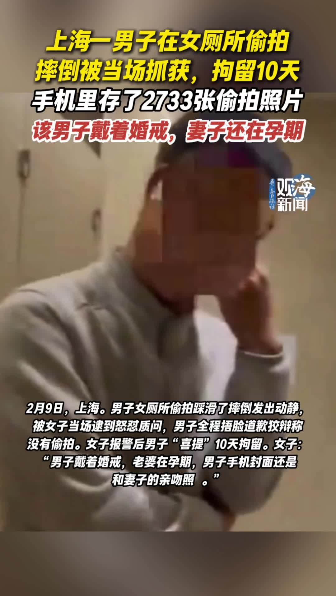 上海一男子在女厕所偷拍摔倒被当场抓获,拘留10天,手机里存了2733张偷拍照片