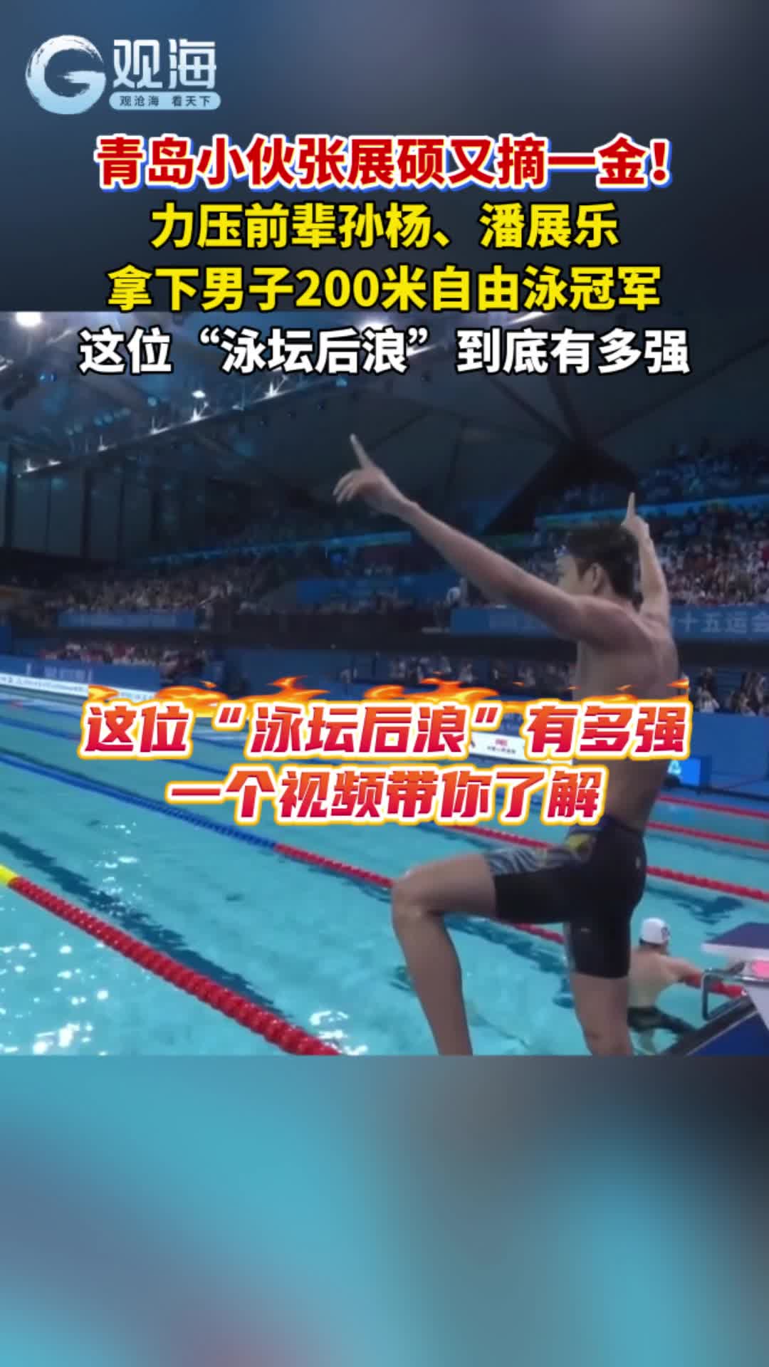 三金王!18岁青岛小伙张展硕以7分46秒69打破全国青年纪录,勇夺十五运会男子800米自由泳冠军