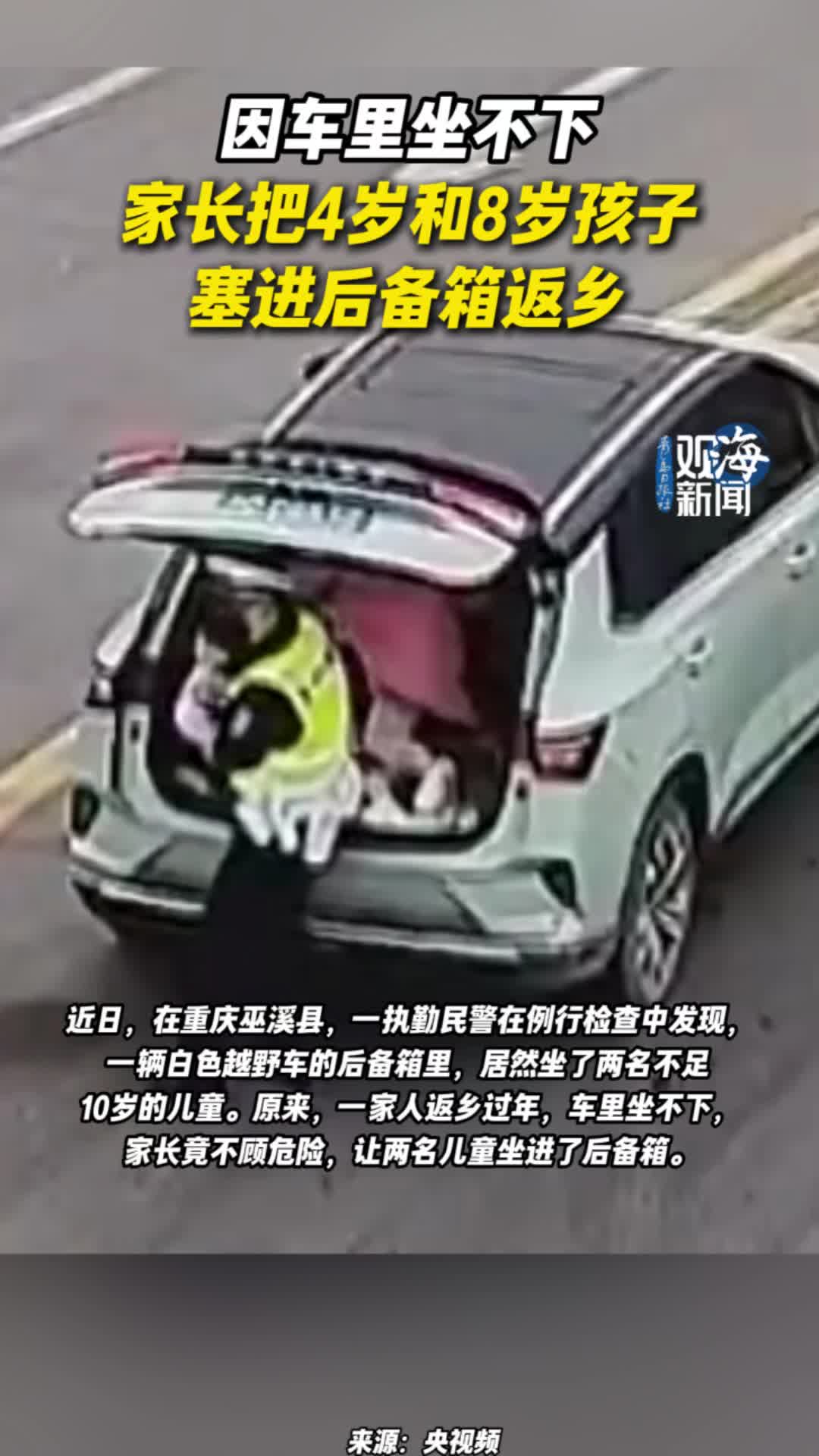 因车里坐不下,家长把4岁和8岁孩子塞进后备箱返乡
