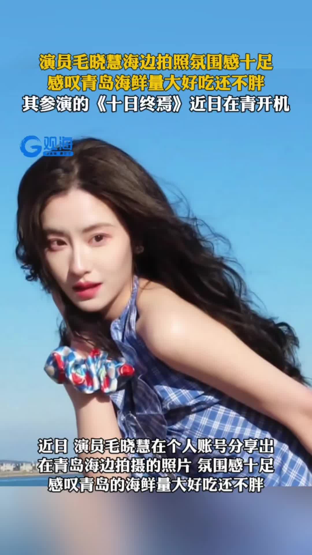 演员毛晓慧海边拍照氛围感十足,感叹青岛海鲜量大好吃还不胖,其参演的《十日终焉》近日在青开机