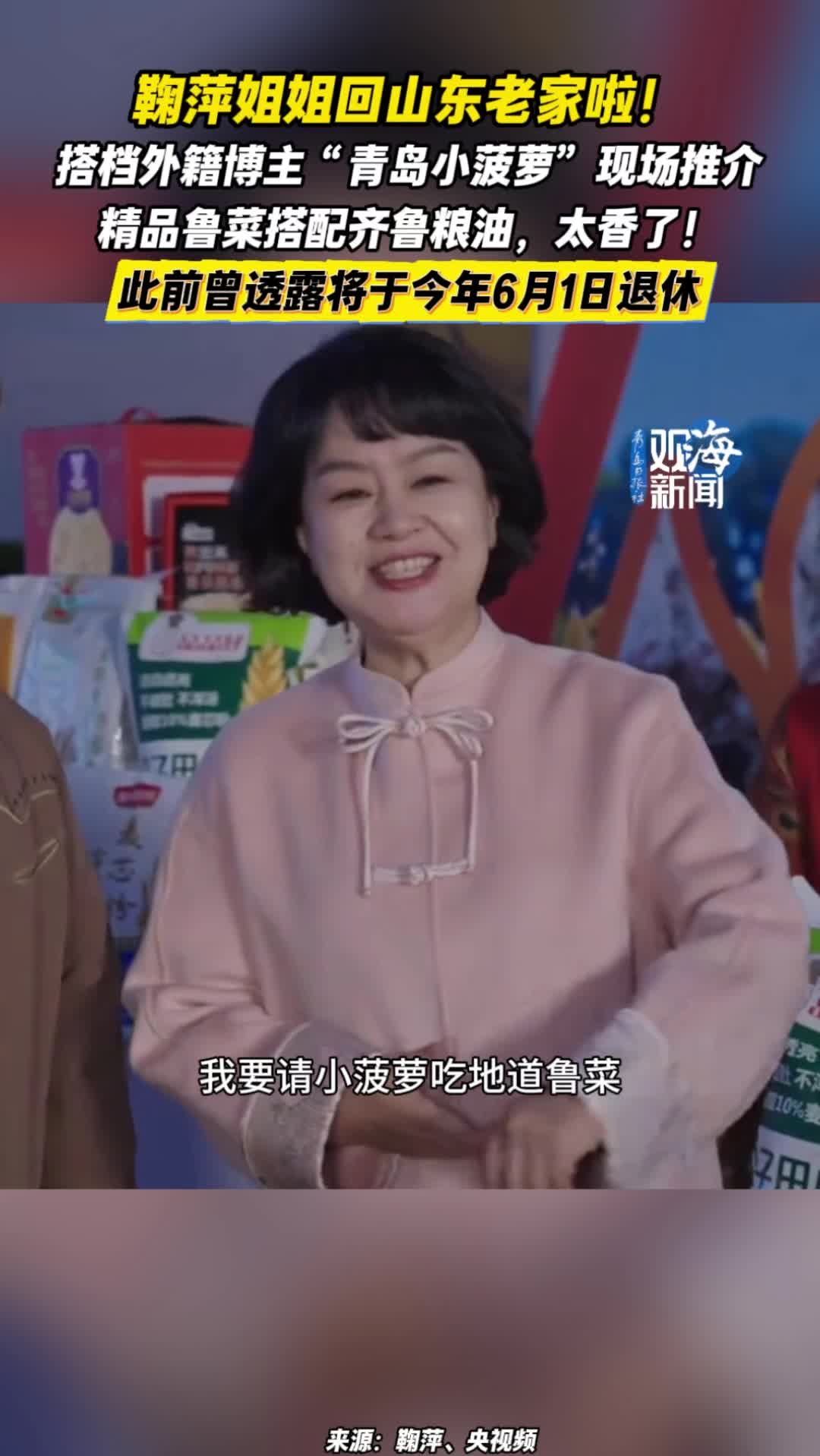 鞠萍姐姐回山东老家啦!搭档外籍博主“青岛小菠萝”现场推介,此前鞠萍曾透露将于今年6月1日退休