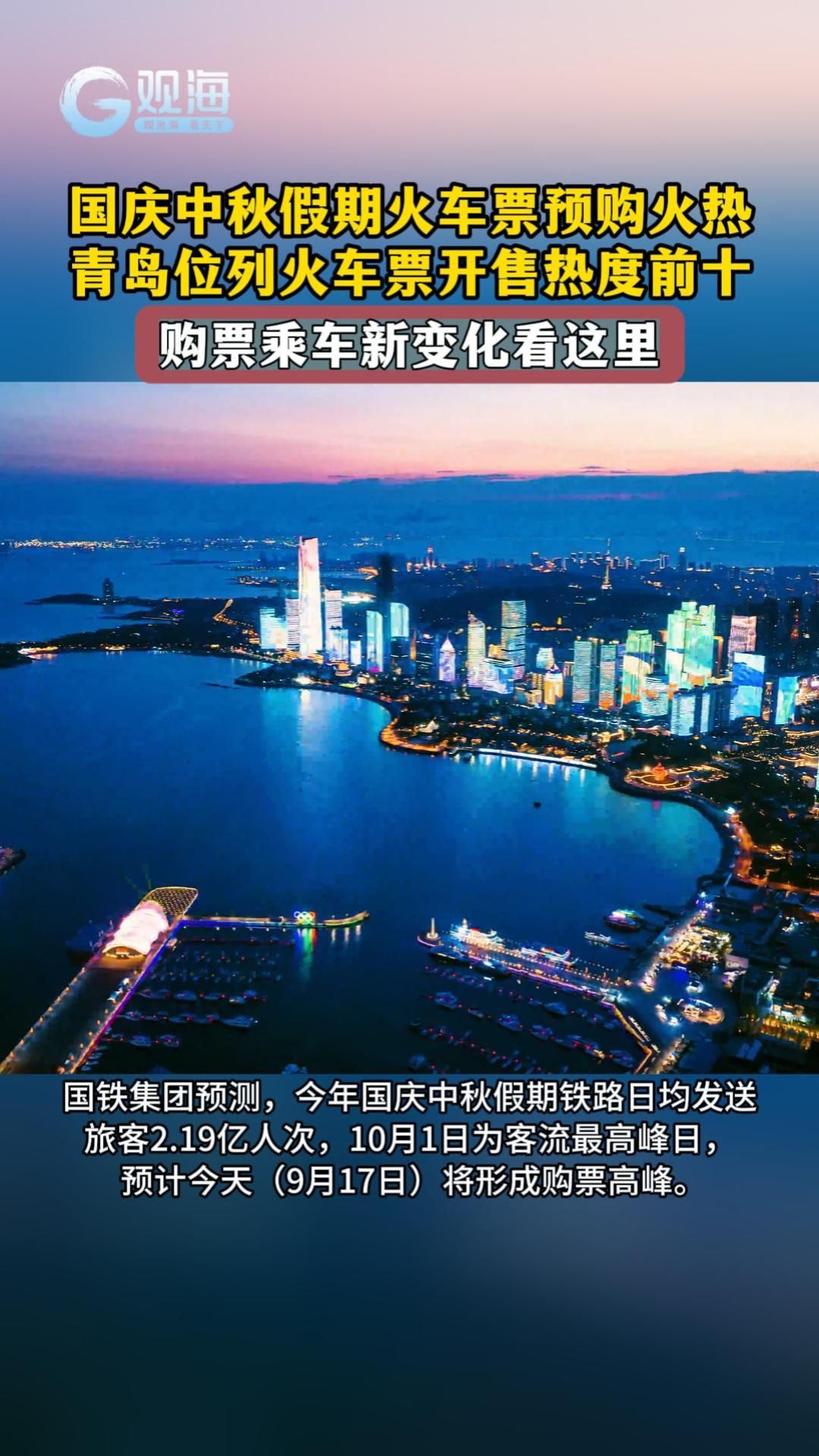 庆中秋假期火车票预购火热,青岛位列火车票开售热度前十