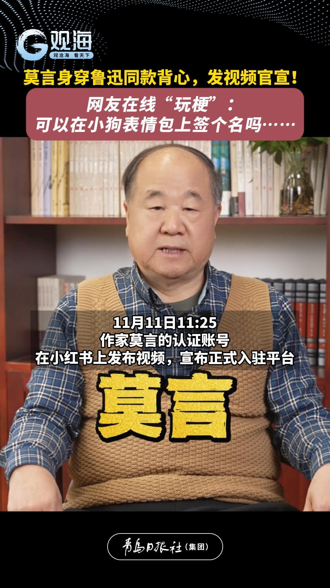 莫言身穿鲁迅同款背心,发视频官宣!网友在线“玩梗”:可以在小狗表情包上签个名吗……