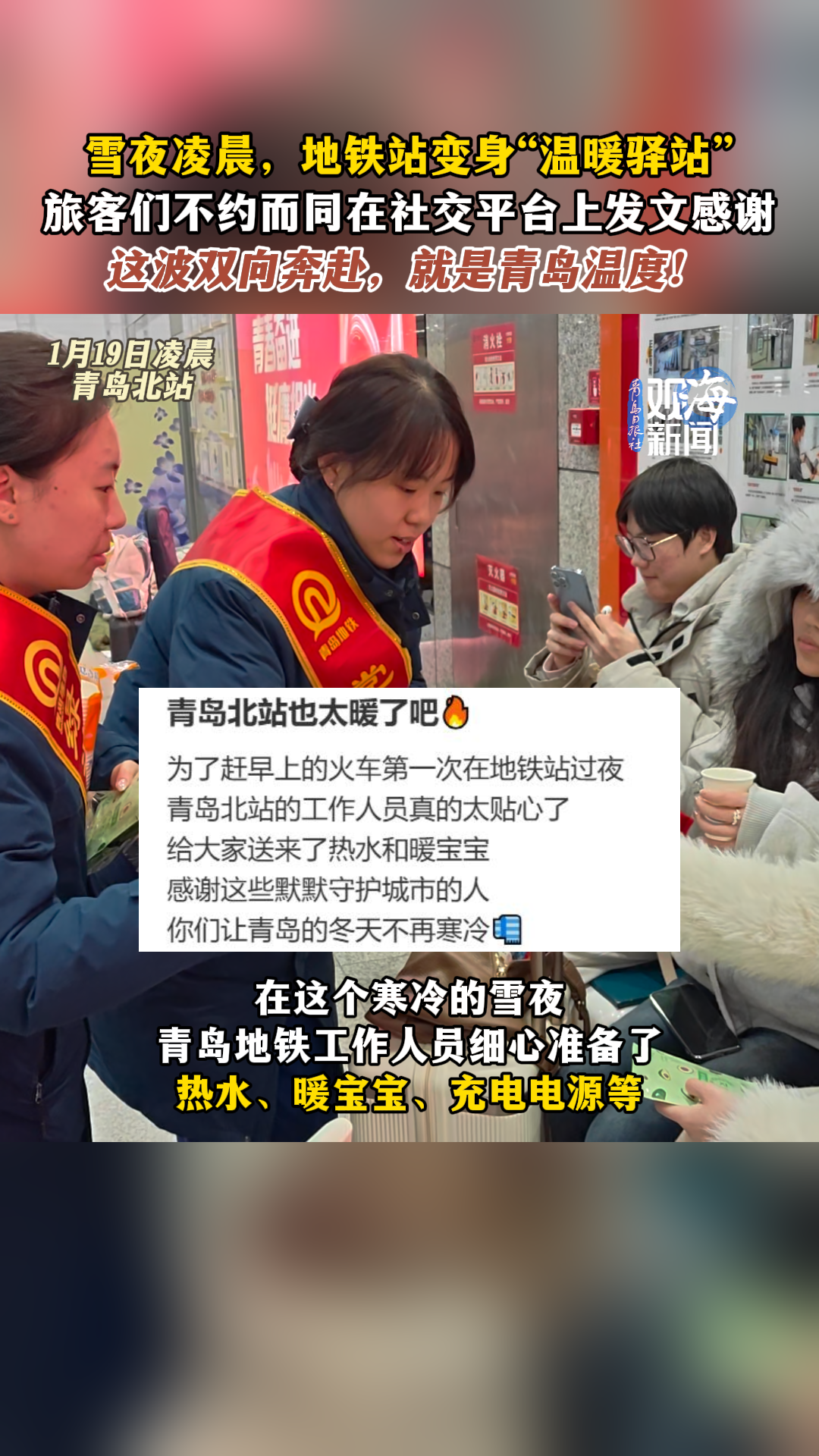 雪夜凌晨,地铁站变身“温暖驿站”,旅客们不约而同在社交平台上发文感谢,这波双向奔赴,就是青岛温度!