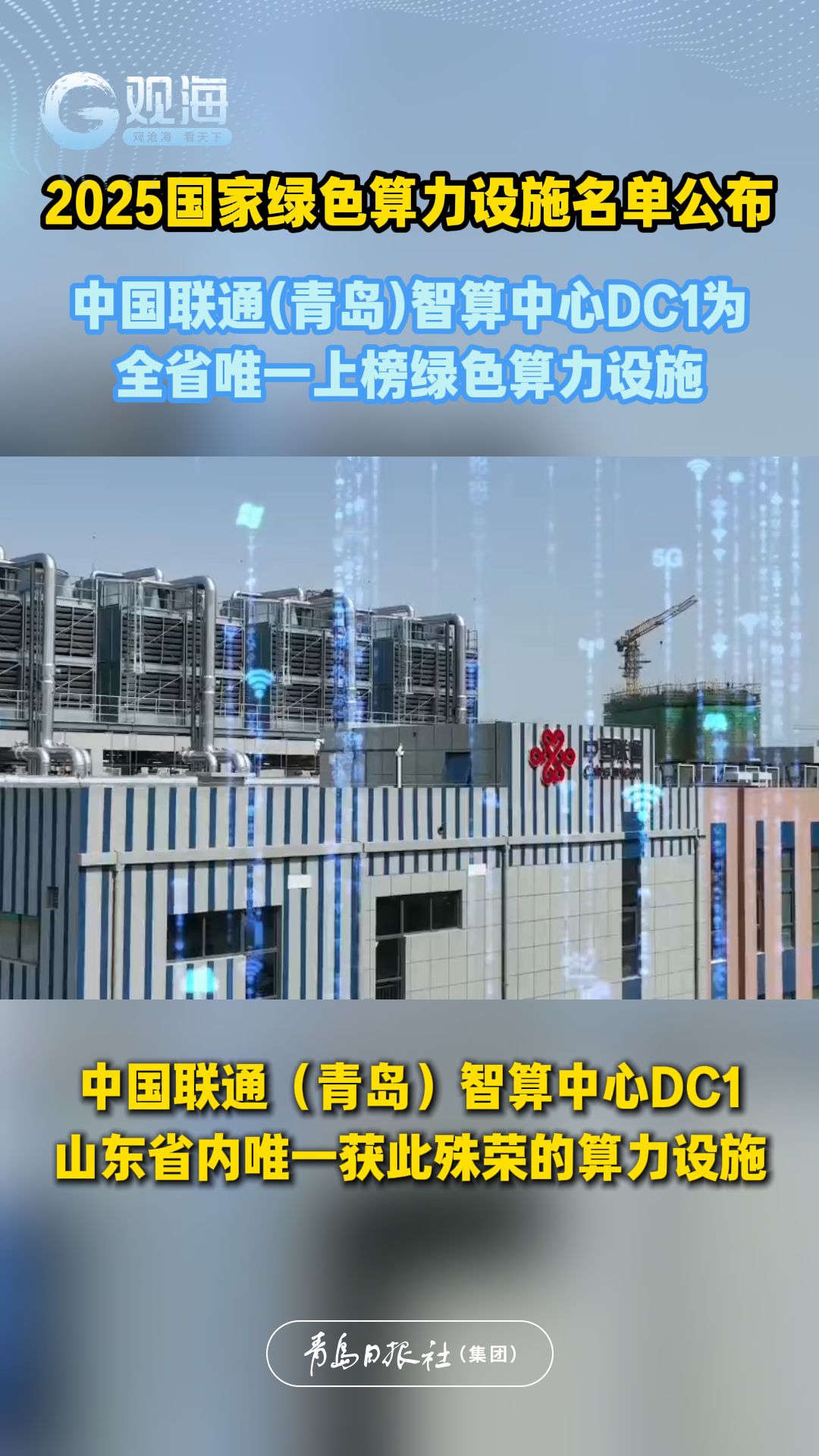 2025国家绿色算力设施名单公布! 中国联通(青岛)智算中心DC1为全省唯一上榜绿色数据中心