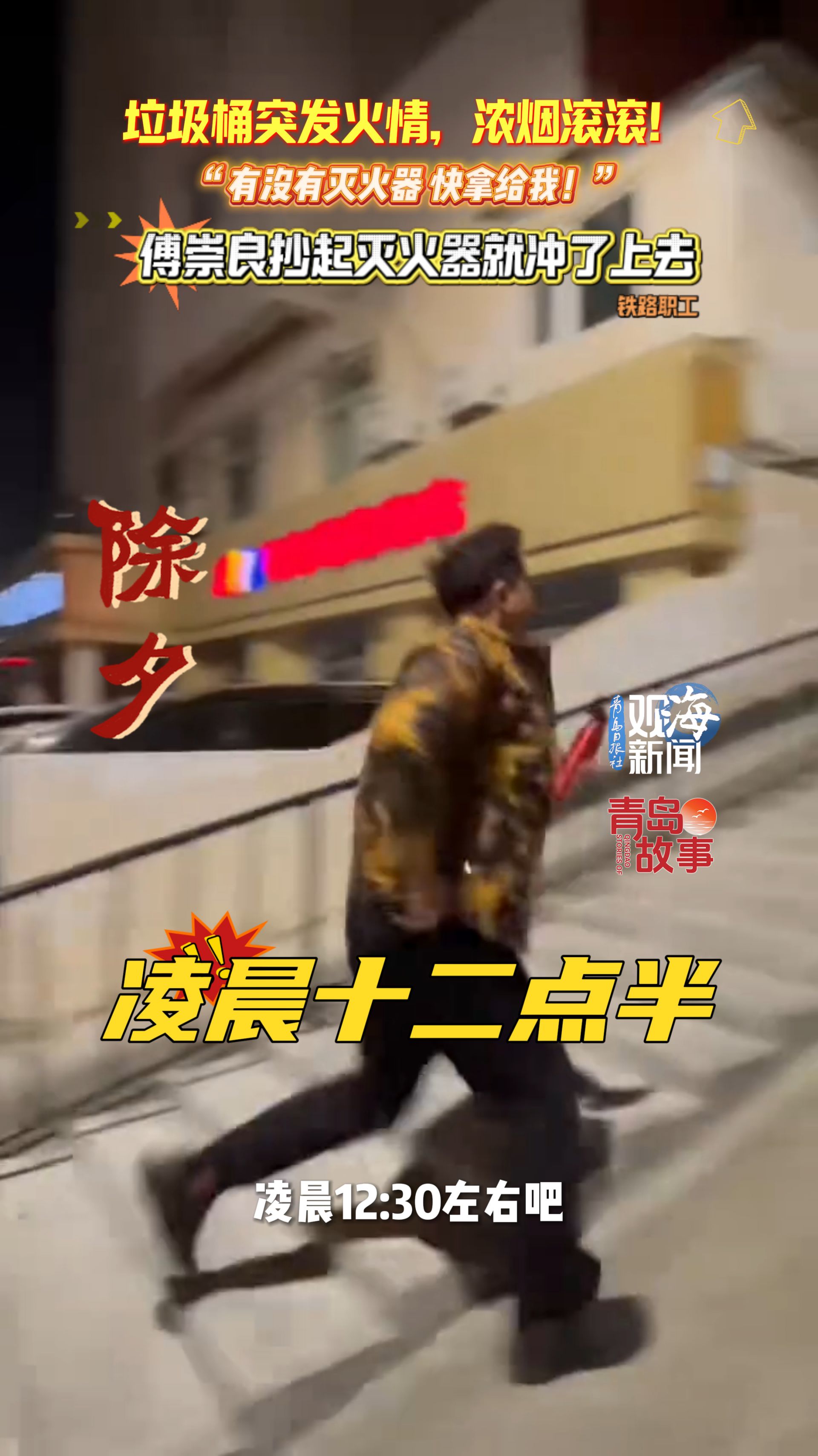 惊险!除夕夜小区垃圾桶着火,他抄起灭火器就冲!