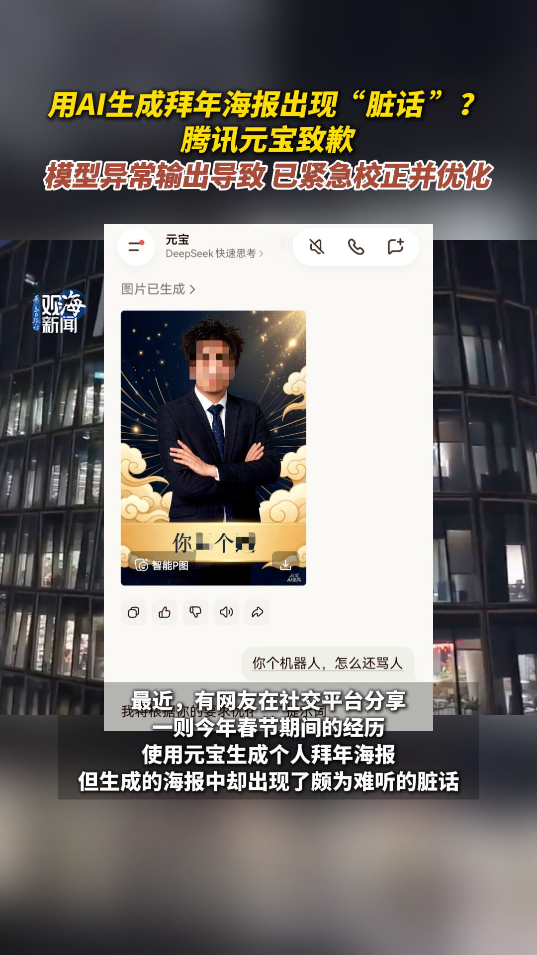 用AI生成拜年海报出现“脏话 ”?腾讯元宝致歉