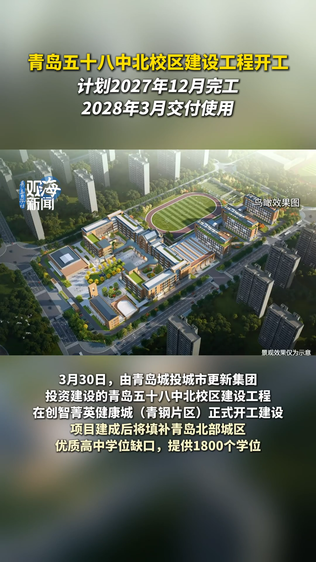 青岛五十八中北校区建设工程开工,计划2027年12月完工