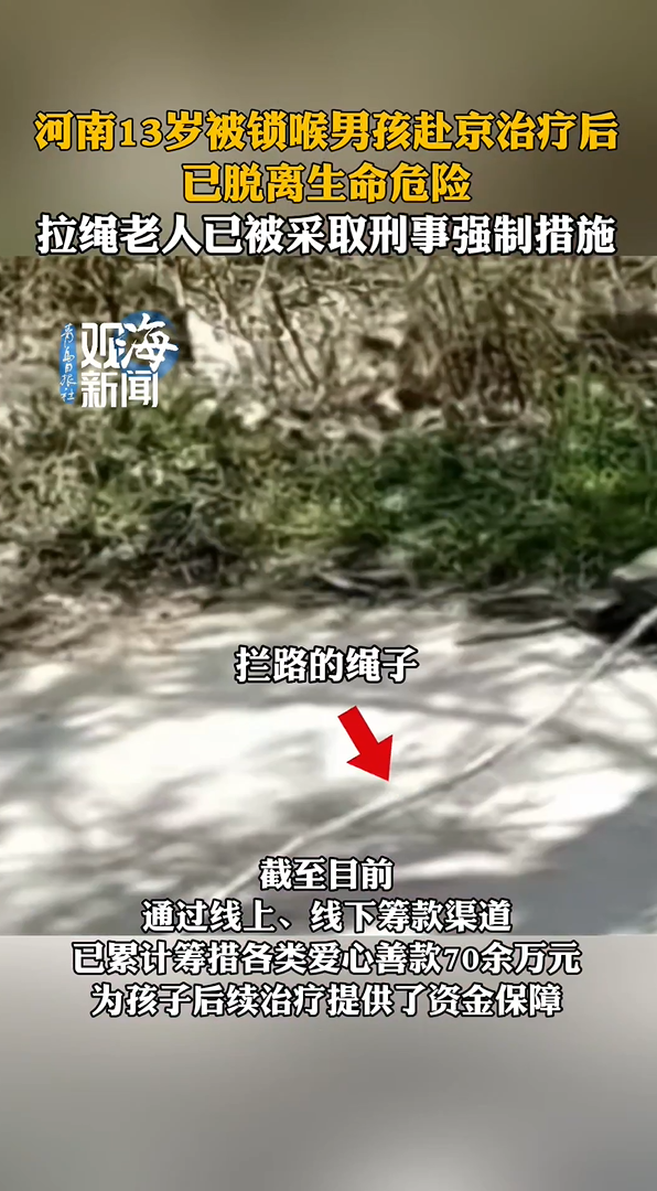 河南13岁被锁喉男孩赴京治疗后已脱离生命危险