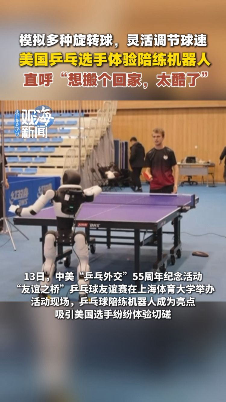 美国乒乓选手体验陪练机器人,直呼“想搬个回家,太酷了”