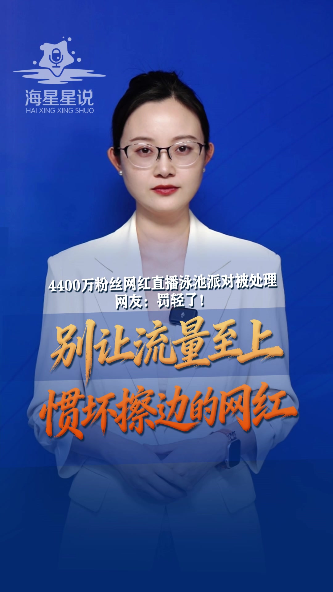 海星星说 | 4400万粉丝网红直播泳池派对被处理,网友:罚轻了!别让流量至上惯坏擦边的网红