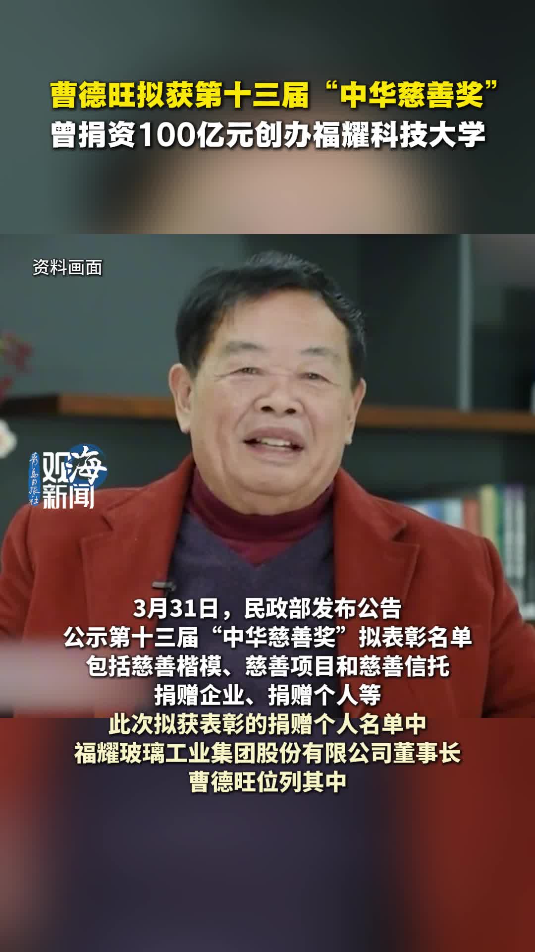 曹德旺拟获第十三届“中华慈善奖”,曾捐资100亿元创办福耀科技大学