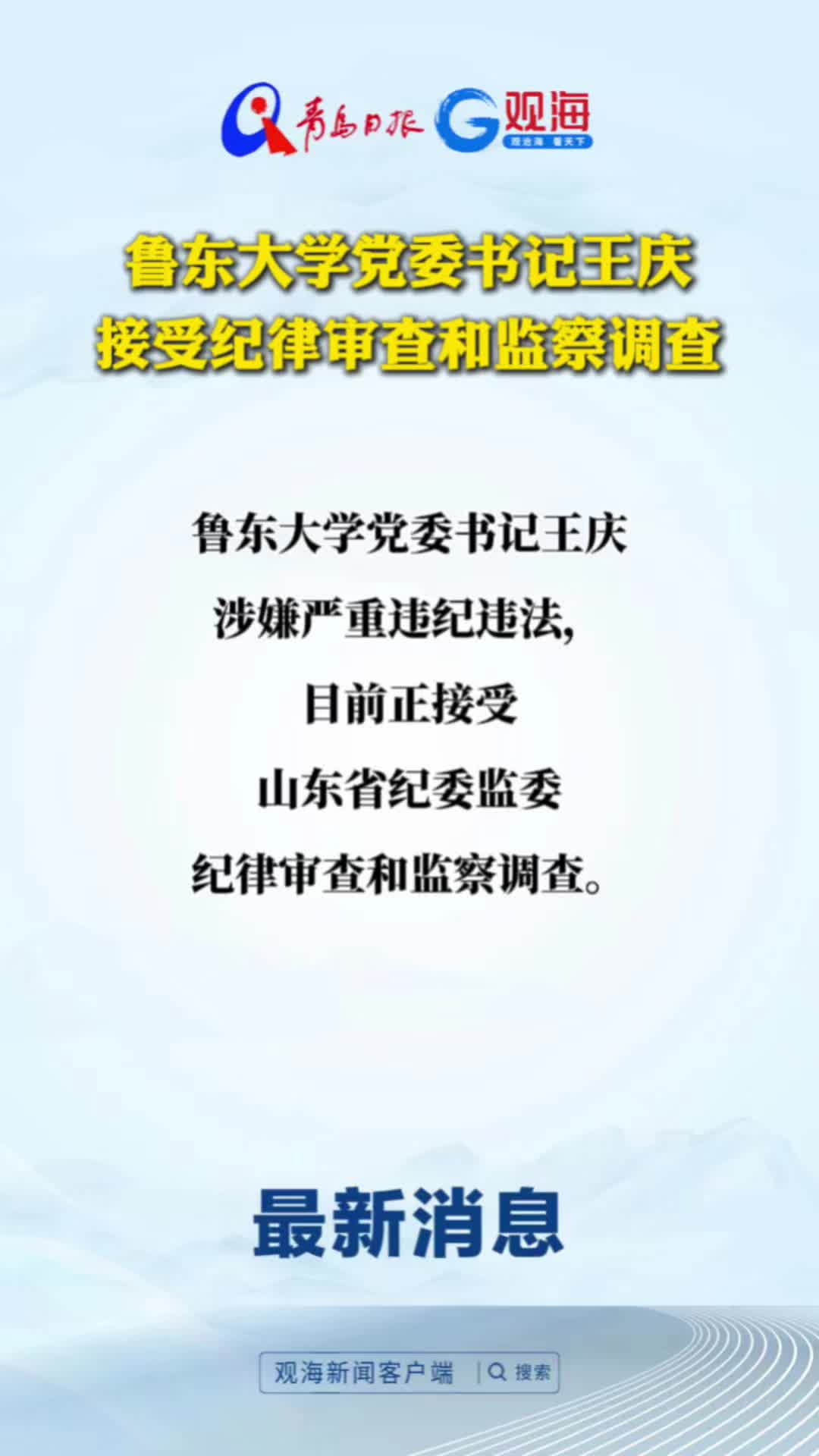 鲁东大学党委书记王庆接受纪律审查和监察调查