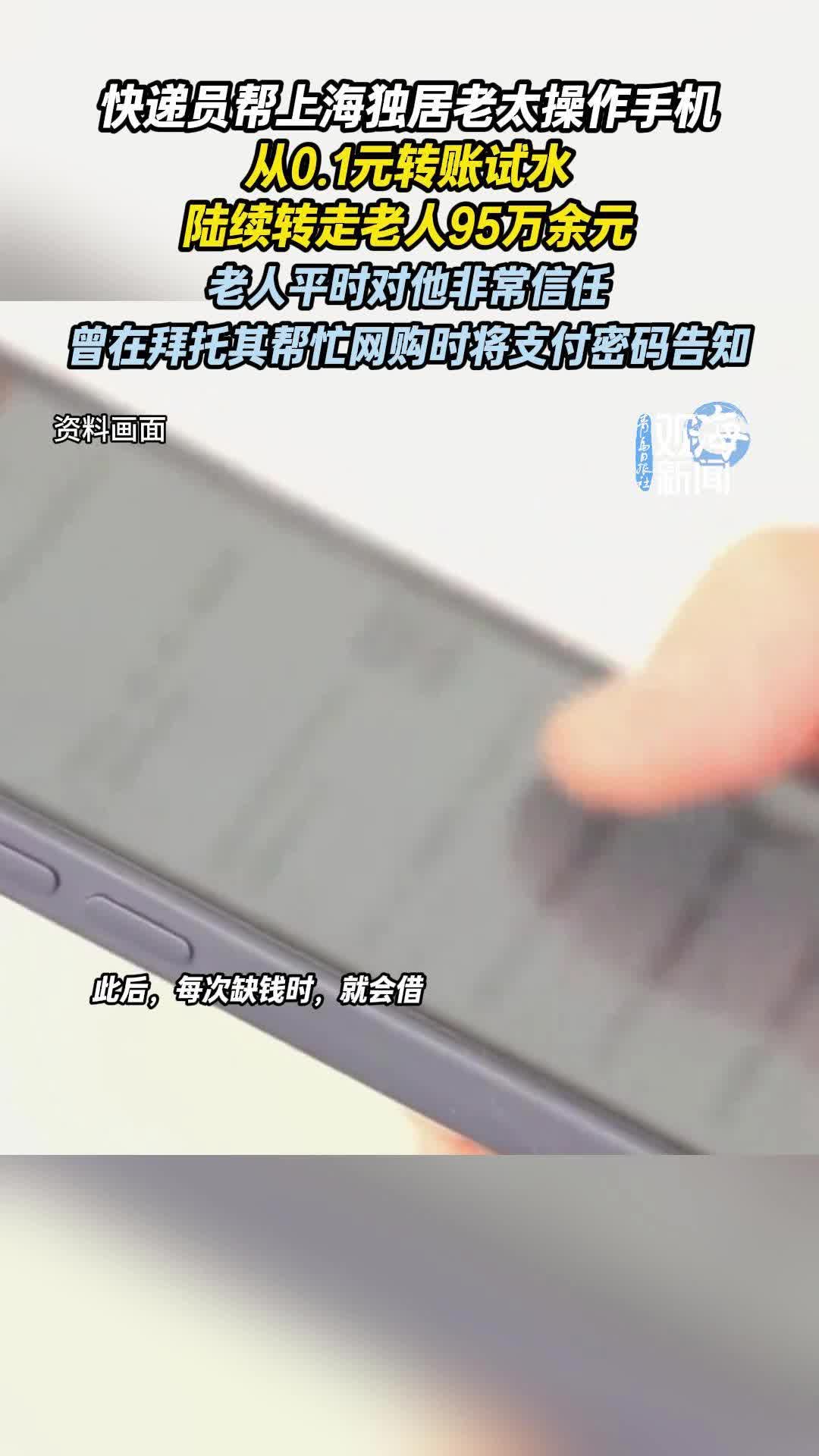 快递员帮上海独居老太操作手机,从0.1元转账试水,陆续转走老人95万余元