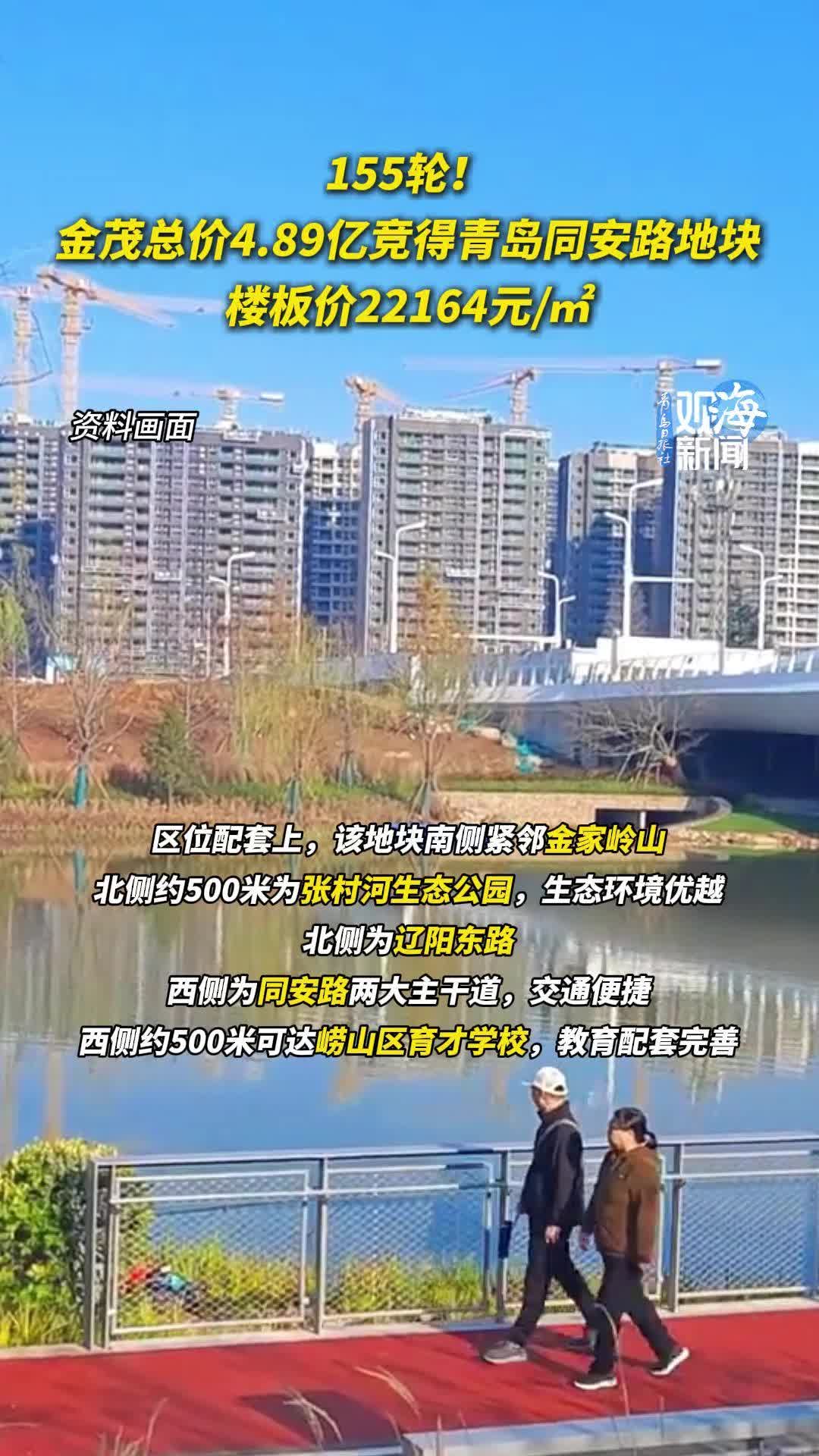 155轮!金茂总价4.89亿竞得青岛同安路地块,楼板价22164元/㎡