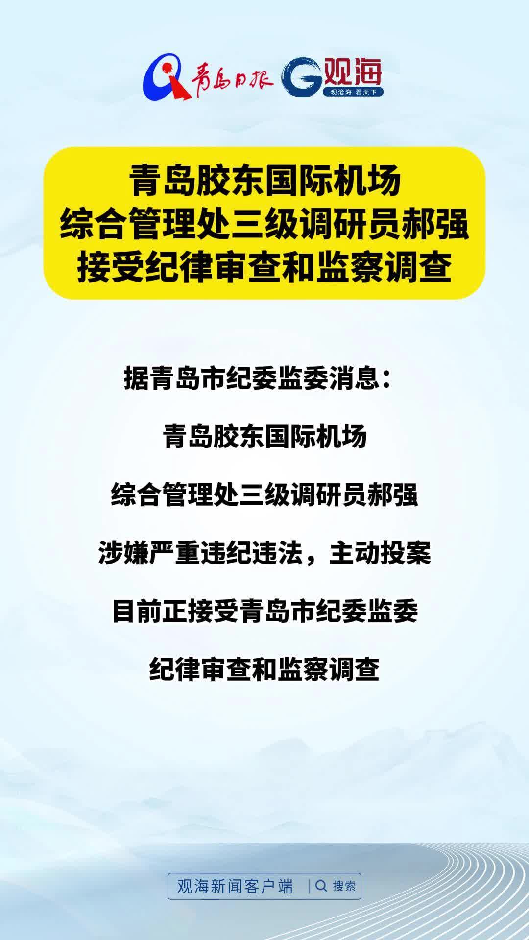 青岛胶东国际机场综合管理处三级调研员郝强接受纪律审查和监察调查