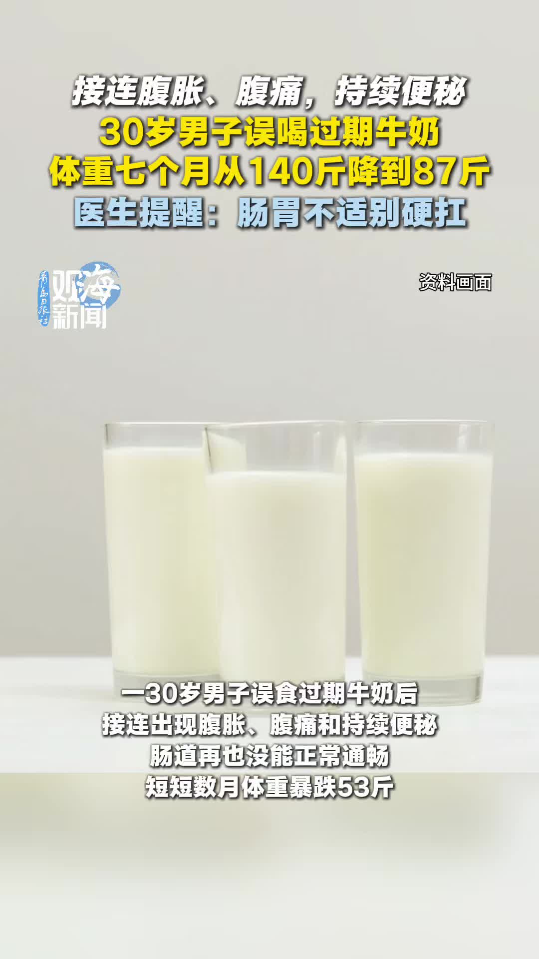 30岁男子误喝过期牛奶,体重七个月从140斤降到87斤